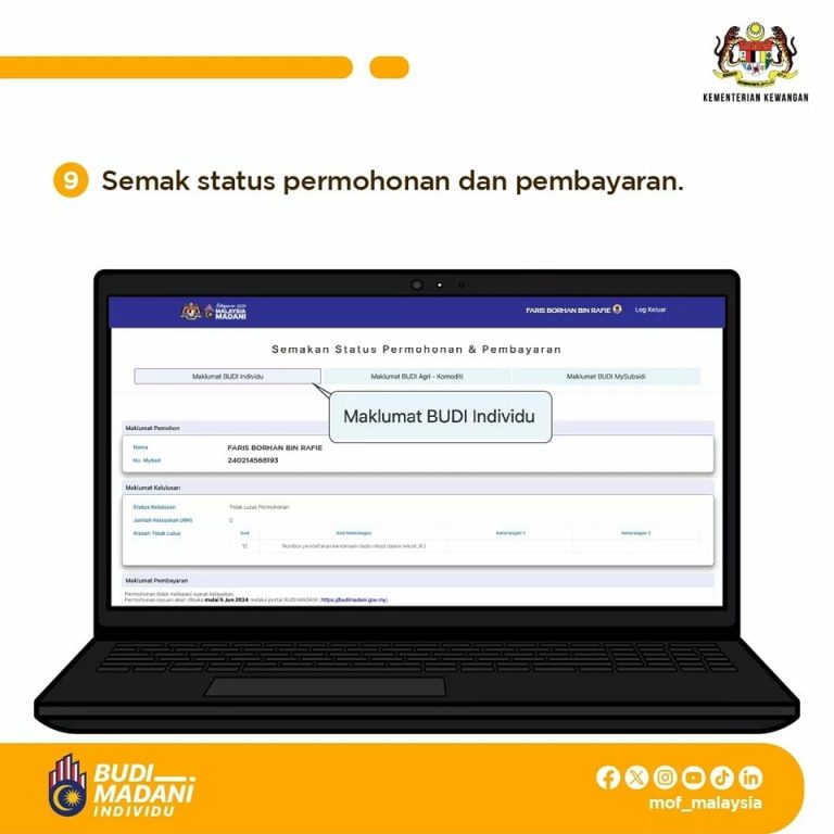 在“Maklumat BUDI Individu”处可检查自身的申请情况,以及付款详情。