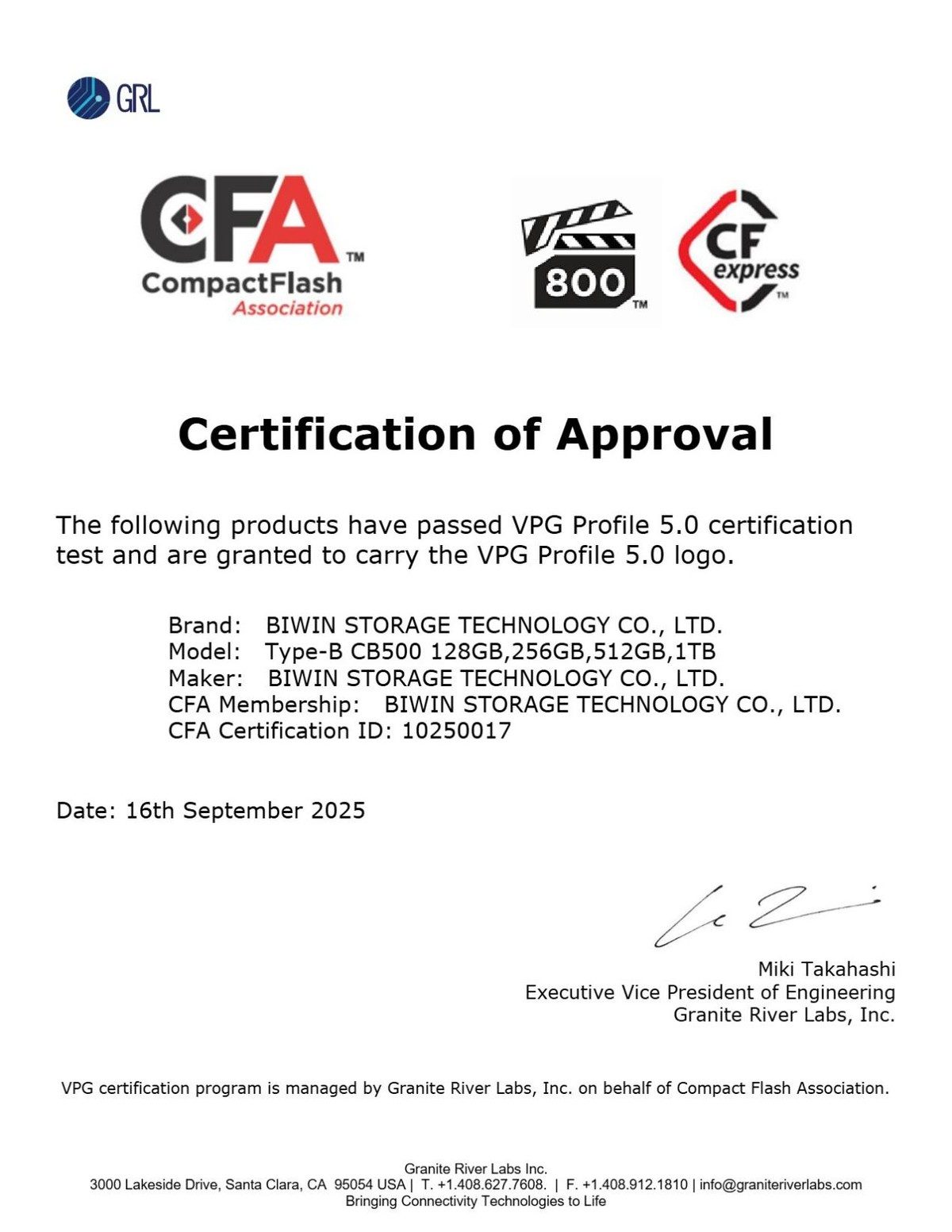 全球首款 | 佰维CB500 CFexpress Type B存储卡荣获VPG800认证!