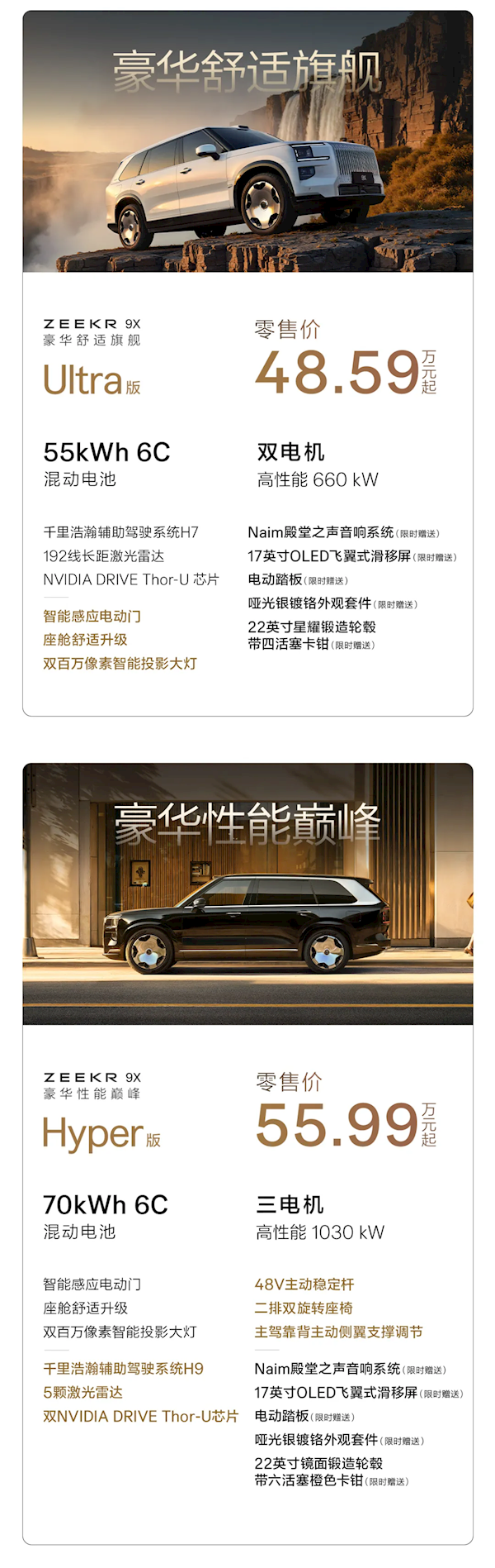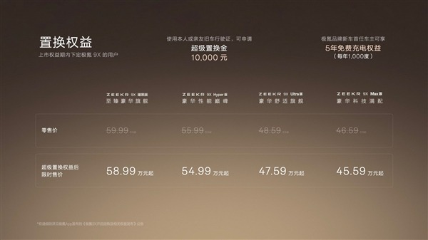 极氪9X Ultra版,售价48.59万元起: