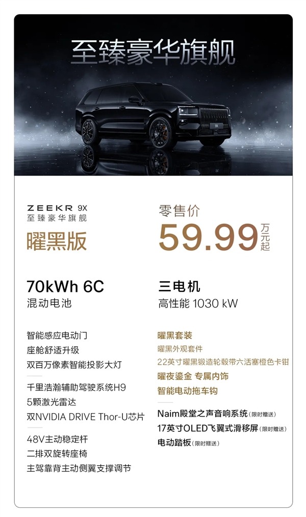 极氪9X 曜黑版,售价59.99万元起