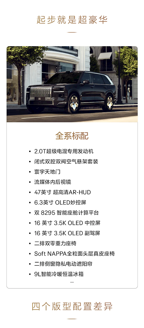 全系没低配 起步就是豪华版!一图看懂极氪9X配置差异