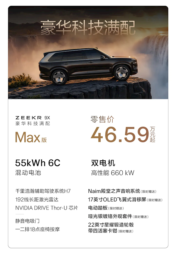 极氪9X Max版,售价46.59万元起: