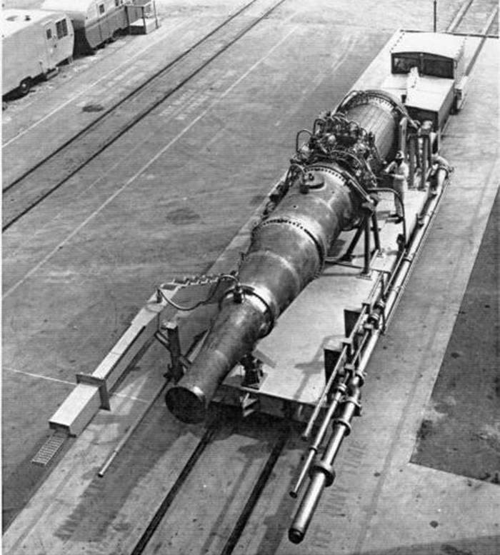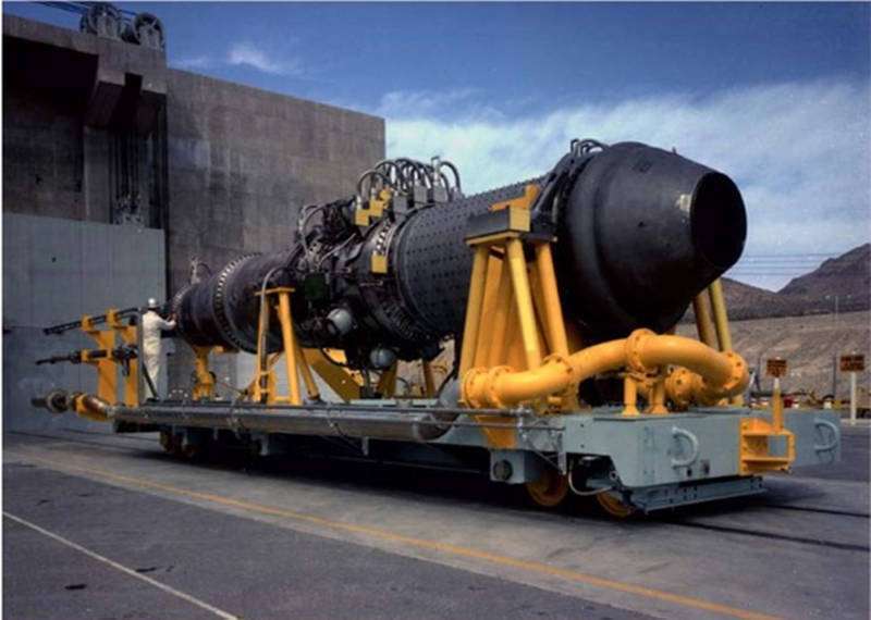 要将这一革命性构想变为现实,工程师们面临着诸多技术挑战,其中最关键的便是如何承受核反应产生的高温。劳伦斯辐射实验室率先研制了实验型号Tory II-A,其设计功率为155千瓦。作为纯粹的试验平台,该发动机未考虑尺寸和重量限制,外形酷似一台火车头。其内部采用特殊陶瓷隔热材料,以铀235为核燃料。由于仅用于地面测试,实验室建造了庞大的高压储气系统来模拟高速飞行时的空气流动条件。1961年进行的多次测试中,虽然出现了核燃料轻微裂纹和辐射超标等问题,但总体上证明了概念的可行性:空气流经反应堆后温度可达1080℃,同时有效冷却了反应堆核心,尾喷口每秒可喷出320千克高温气流。