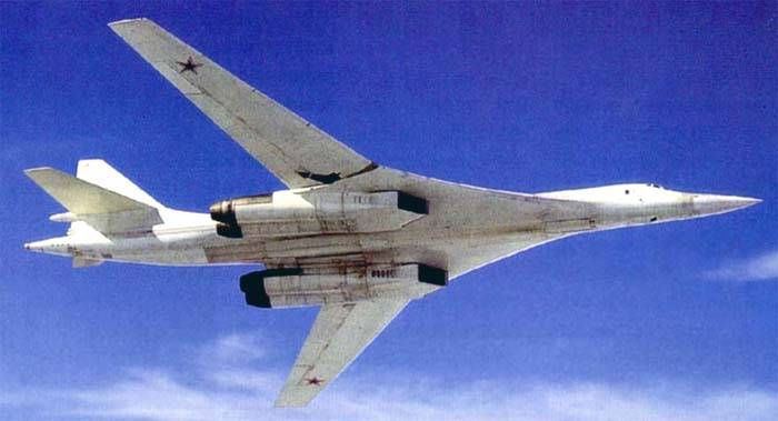 远程打击“武库机”,高速突防为主的超音速变后掠翼战略轰炸机,世界最重轰炸机,可载Х-55/Х-55М巡航导弹和Х-15高超音速导弹(M5.0),载弹量22.5/40吨,不加油航程14000/10500千米。