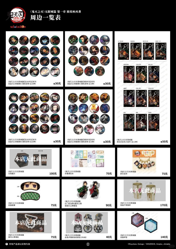 这次快闪店最大的亮点,是官方首次公开发售 ufotable 官方周边商品。这意味着粉丝有机会在第一时间收藏到官方授权、质量极高的独家纪念品。店内将有大量《鬼灭之刃无限城篇》主题商品!