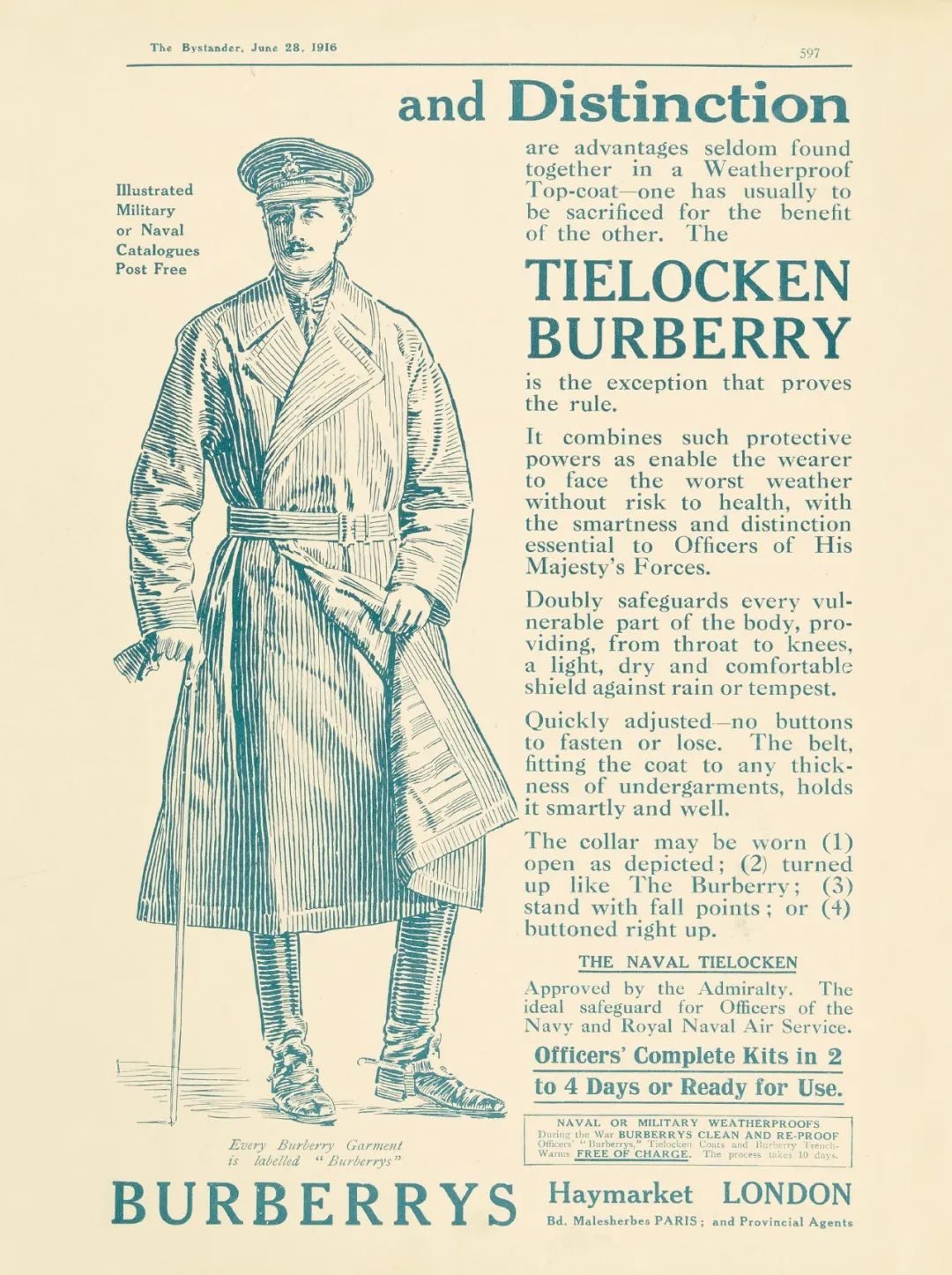 所以最早Burberry家的大客户其实是英国陆军部,军官们冒着风雨艰苦作战的时候,Burberry家的风衣就是最好的“金钟罩铁布衫”。