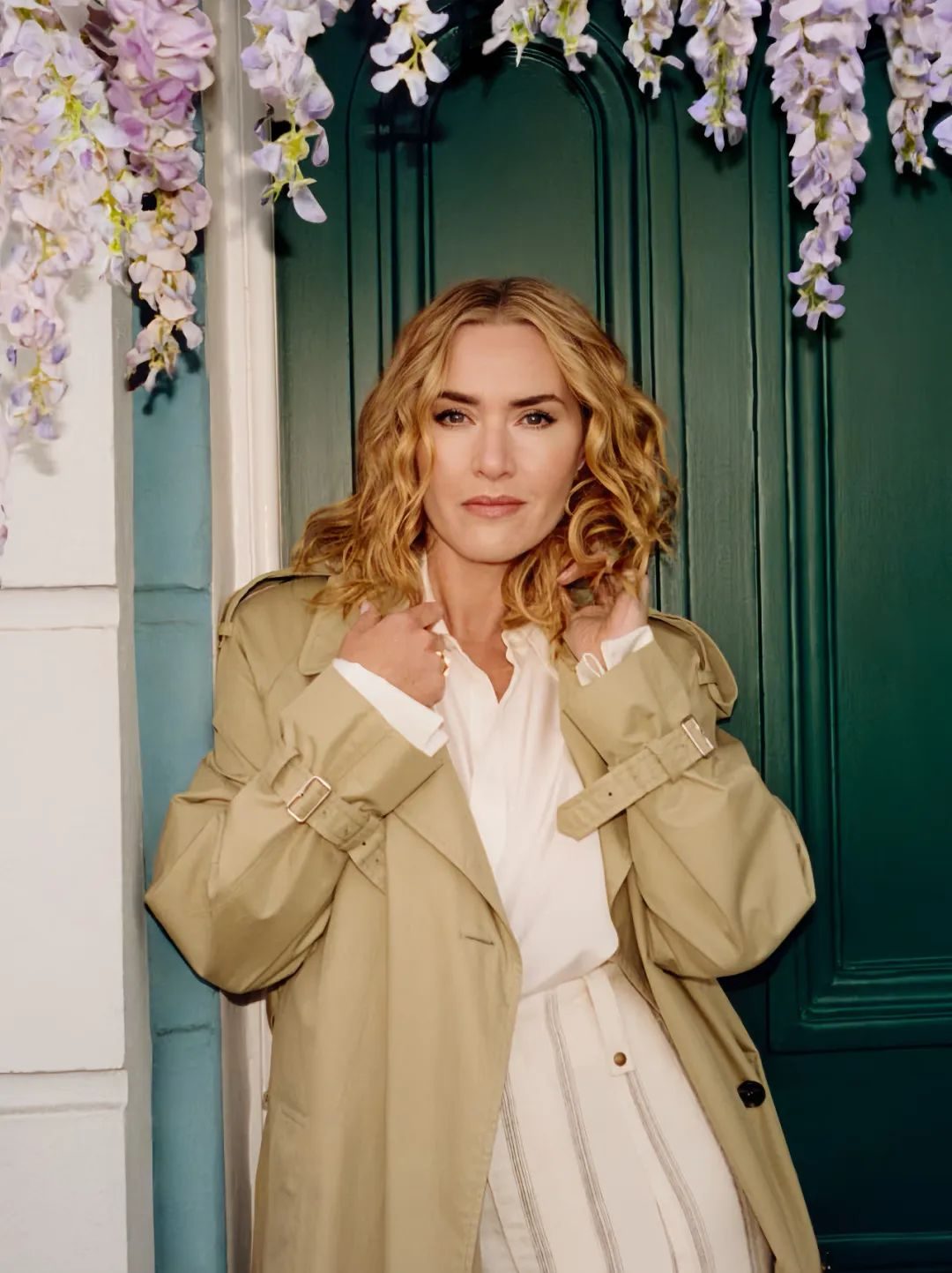 伦敦的一个寻常午后,电台里的女声正在播报天气:上午天气晴朗,之后时有阵雨。穿着知性风衣的Kate Winslet一边打着电话,一边从Camden凯利街紫藤花缠绕的小屋里走出来。
