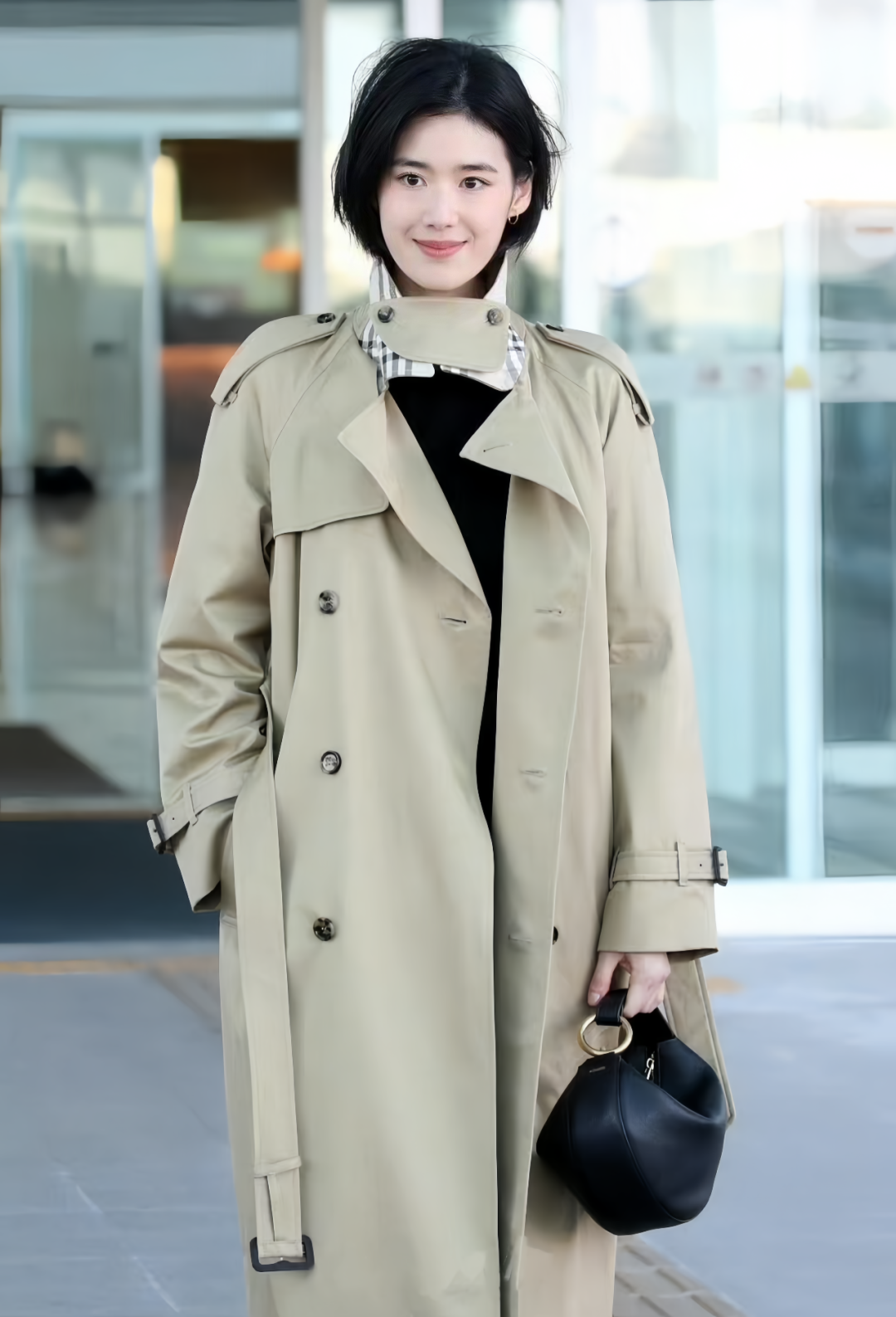 我自己是觉得这可能是整个Burberry家最适合亚洲女孩子的版型,窄肩收腰的设计会显得人很瘦长,是Burberry家风衣里难得可以穿出甜美俏皮感的款式。