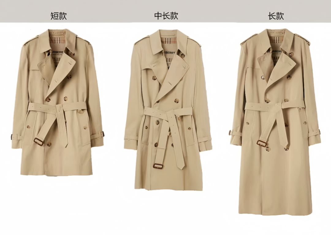 上面推荐的这几件Burberry当家风衣都是分三种长度的,长款、中长款和短款,大家可以根据自己的身高和想要穿出来的效果来挑选,长的气场强大,短的精简干练,都不会出错的。