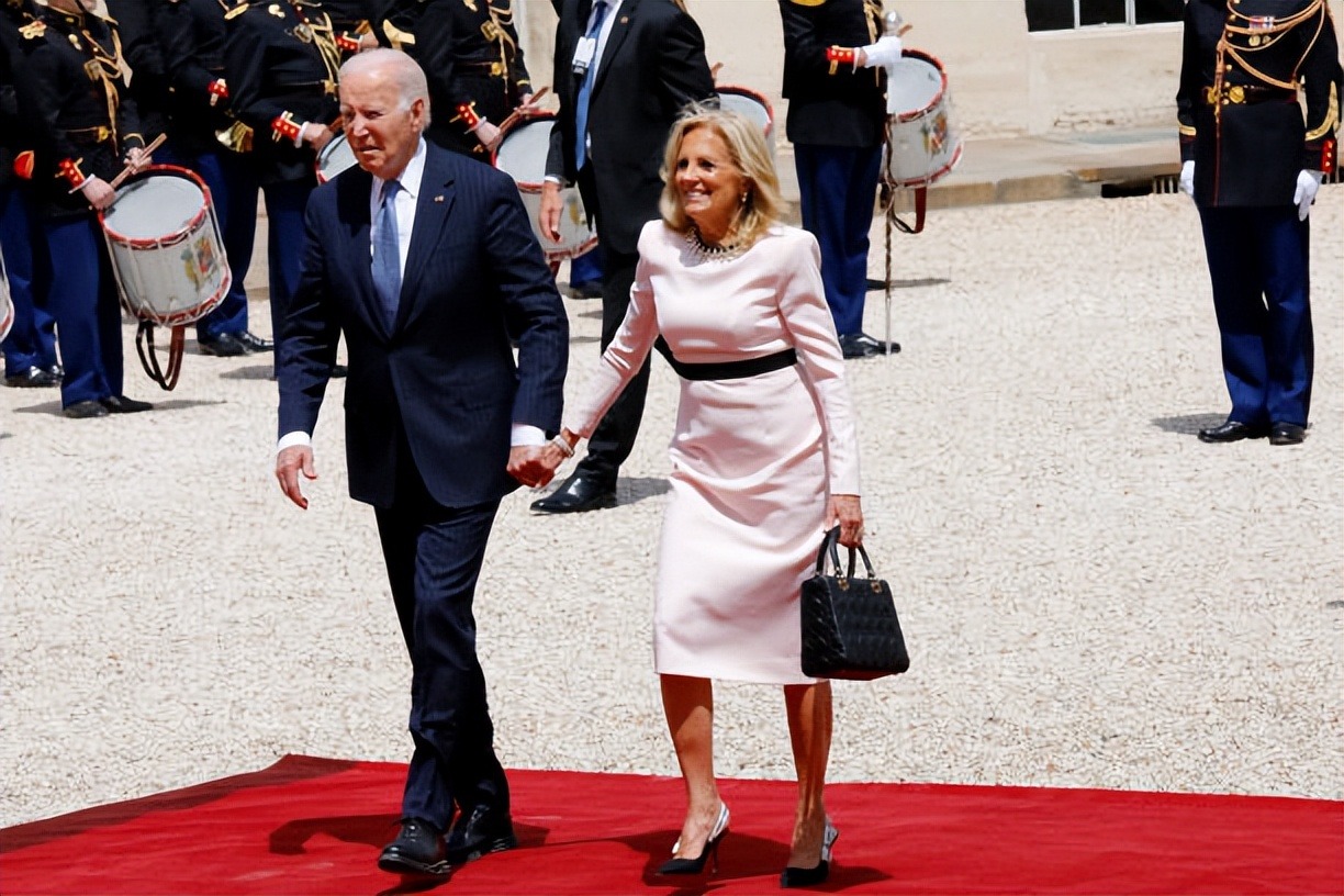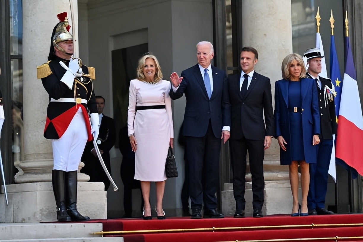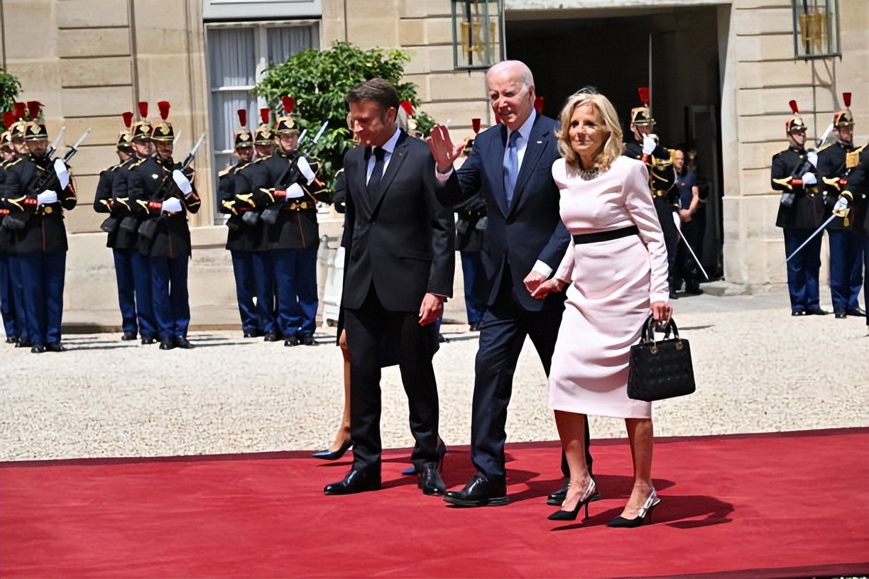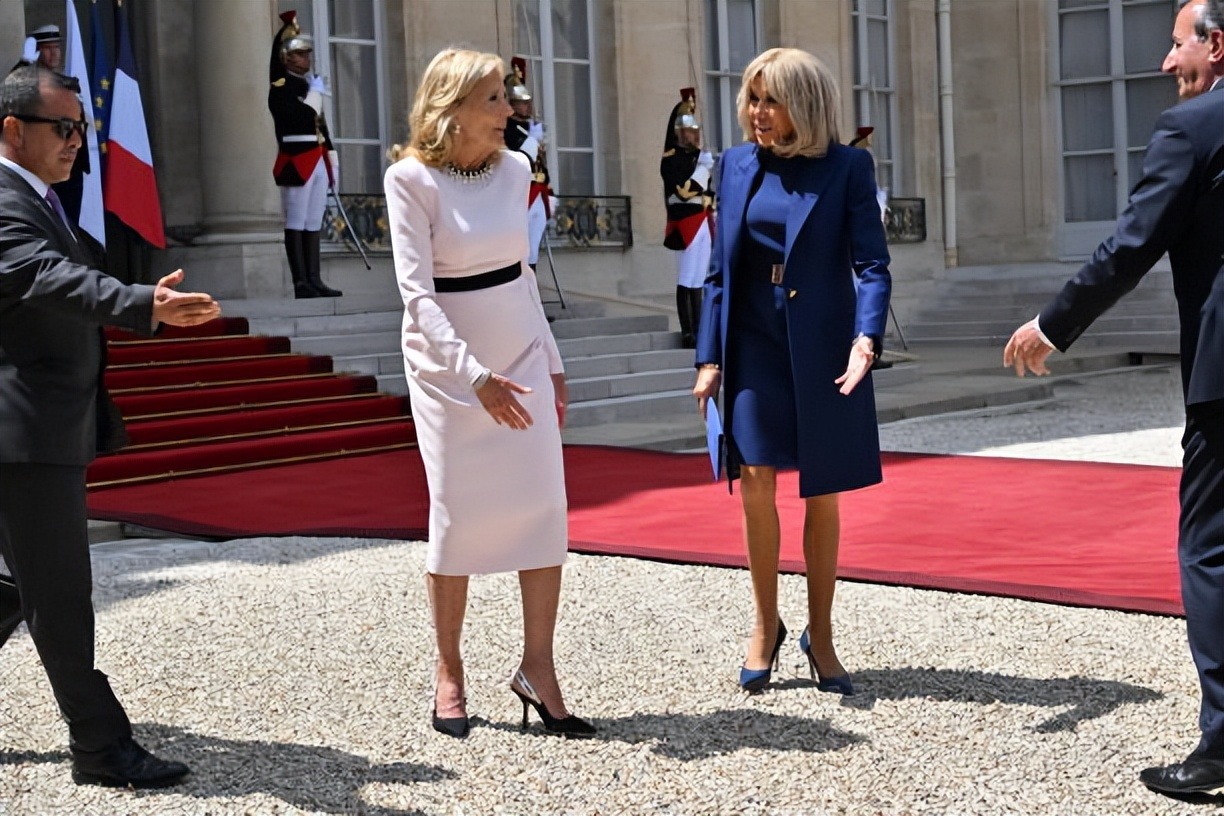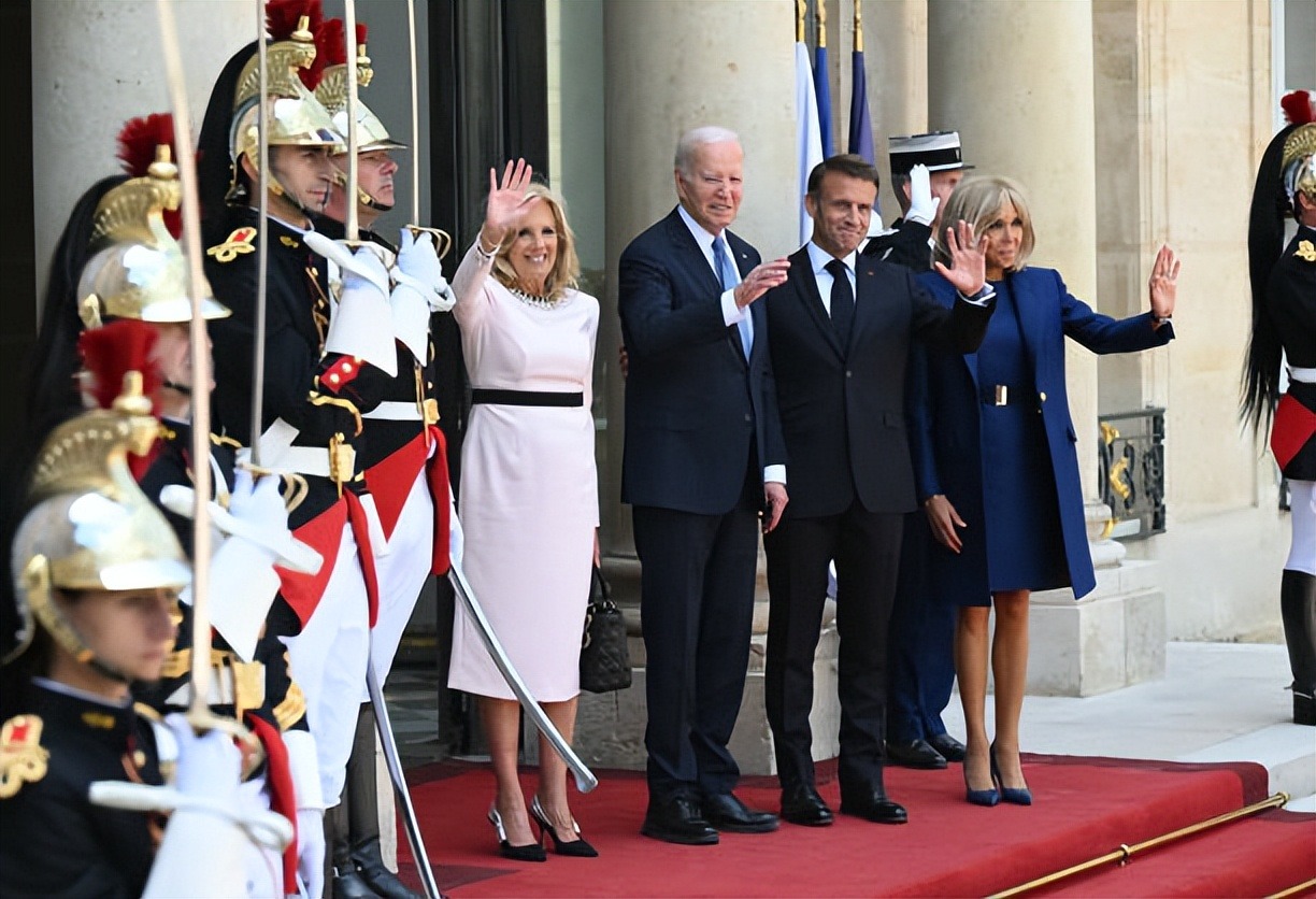 拜登夫妇正式访问法国!布丽吉特叠穿蓝色踩恨天高迎接,把人美到