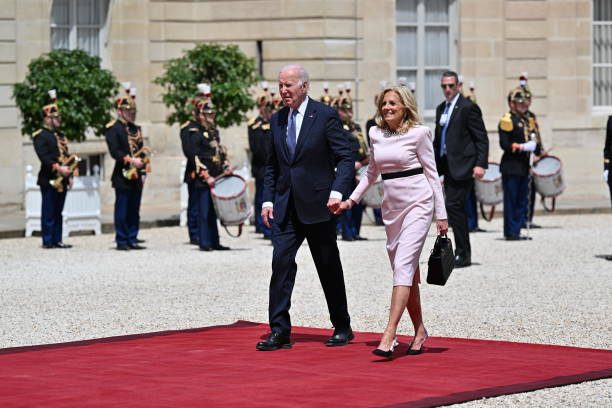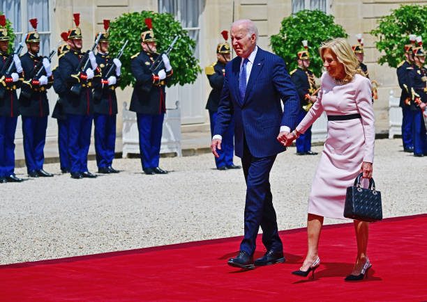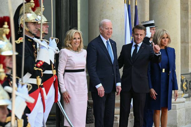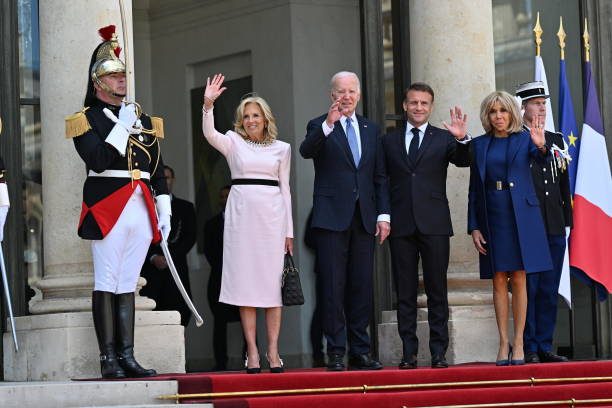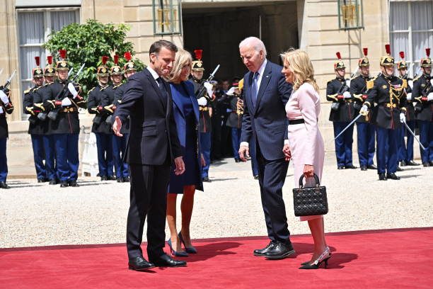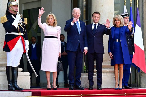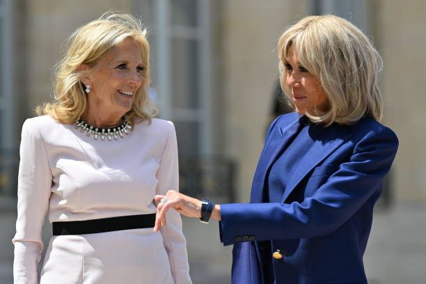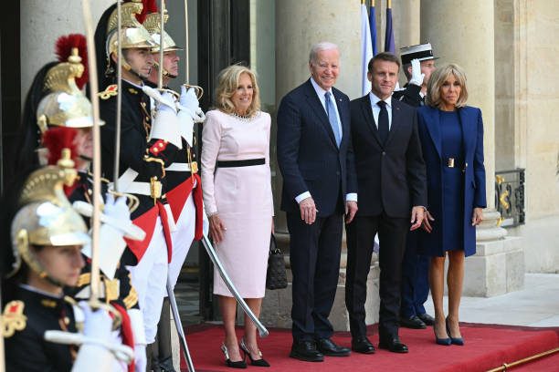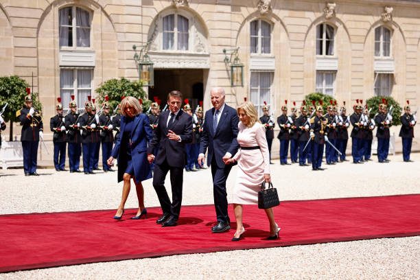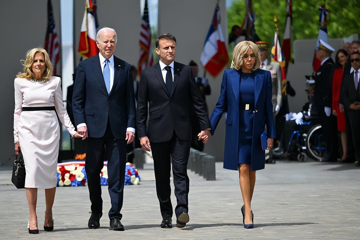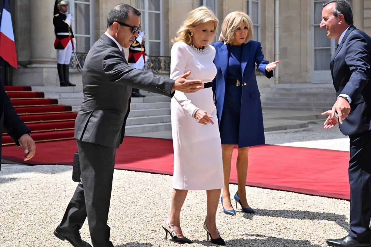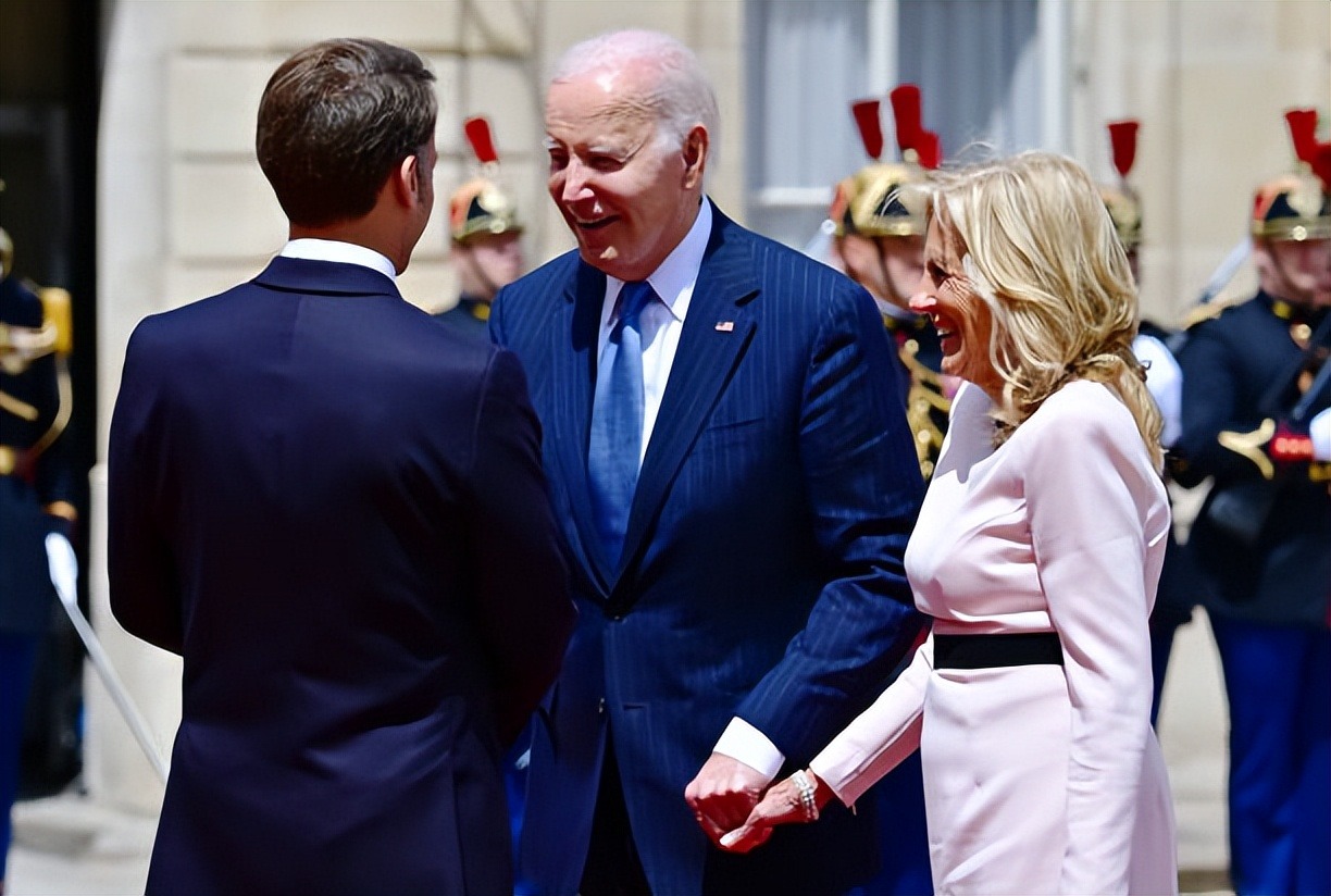拜登夫妇正式访问法国!布丽吉特叠穿蓝色踩恨天高迎接,把人美到
