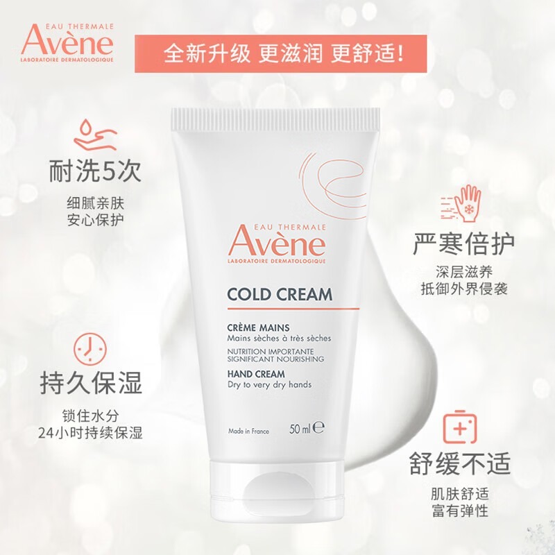 总是细心照料敏感皮肤状况的Avene,旗下这款冷霜柔润修护手霜更是不能错过!以白蜂蜡与雅漾活泉水配方为养护核心,属性温和、单纯,更无香料、色素的负担感,使用起来轻盈好吸收,可完美改善手部干燥、红痒等脆弱问题。