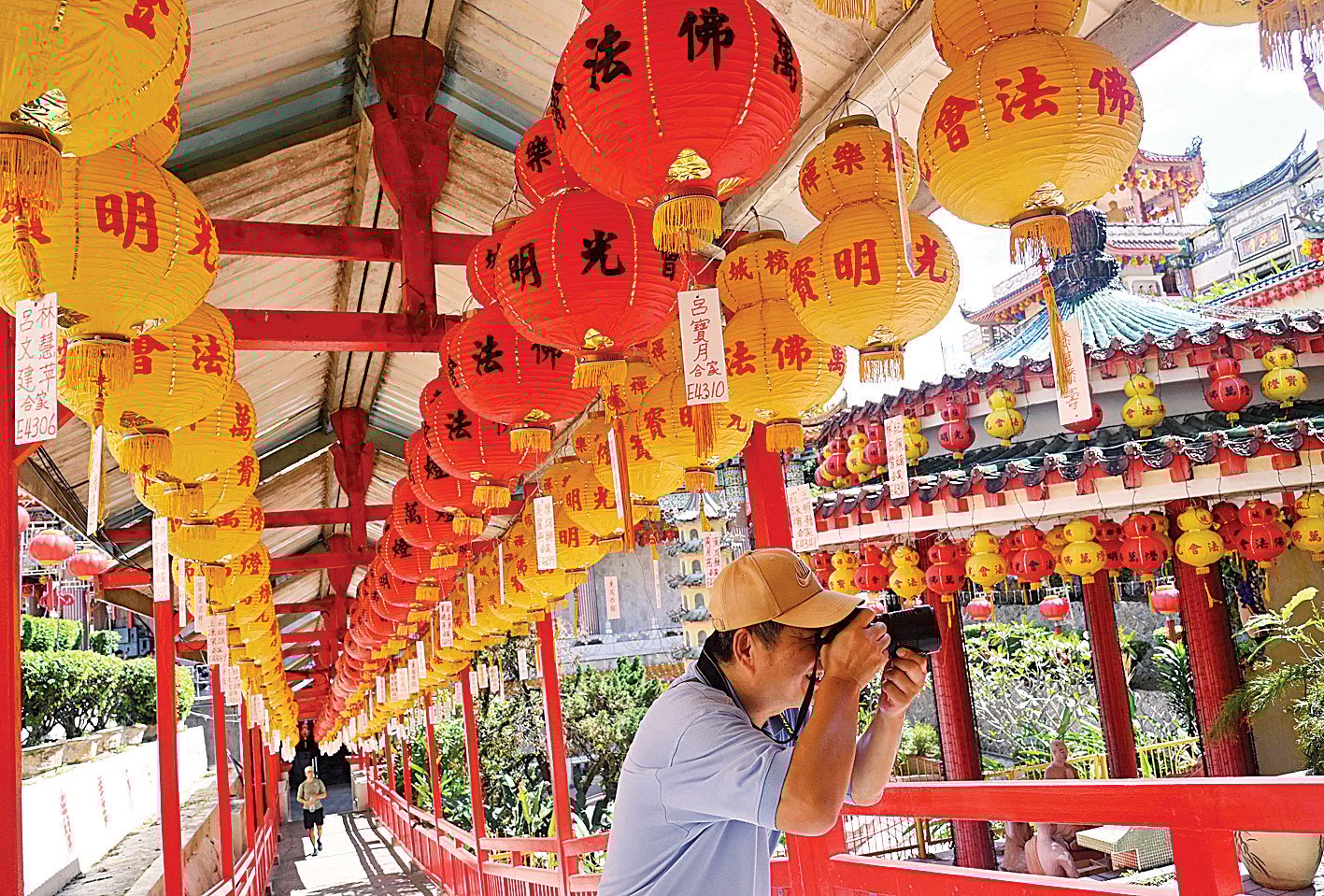 据了解,今年极乐寺特别添加鱼形灯笼,寓意年年有余。此外,也有一些充满喜气的吉祥结大灯饰,特别有新年的气氛,因此,目前也吸引不少民众前往拍照打卡。