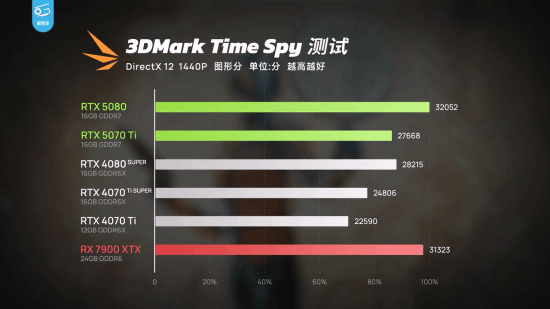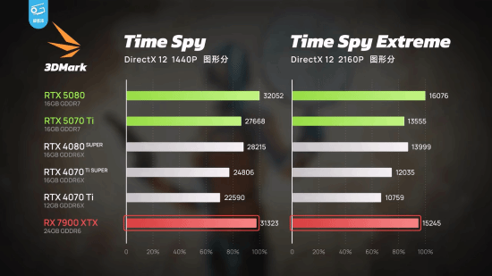 在3DMark Time Spy和Time Spy Extreme中,RTX 5070 Ti性能接近RTX 4080 Super。