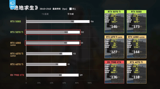 在《绝地求生》等竞技游戏中,2K和4K分辨率下表现接近RTX 4080 Super。