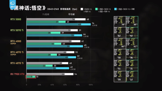 而RTX 5070 Ti支持DLSS 4技术,在支持的游戏中,帧数有明显的提升。