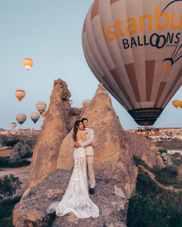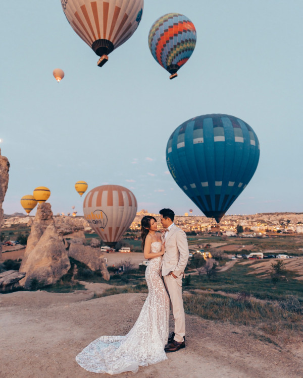 上百颗五彩斑斓的热气球同时升空,与漫天彩霞交织成一幅如梦似幻的画面,这正是卡帕多奇亚被誉为全球最受欢迎、此生必去的热气球体验目的地之一的原因 。这不只是一趟飞行,更是一场与大自然鬼斧神工的亲密对话,让人在瞬间感受到难以言喻的感动 。不少情侣、明星及艺人也来这里打卡及拍摄婚照。