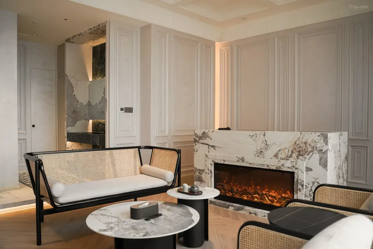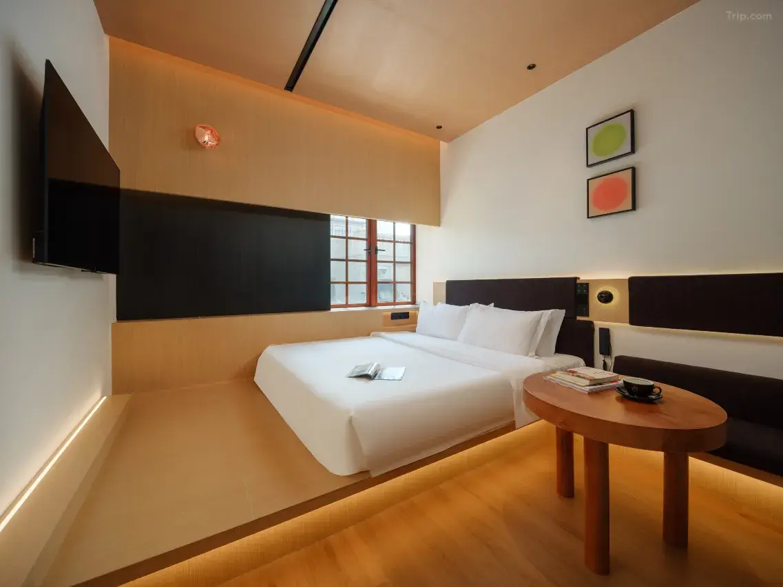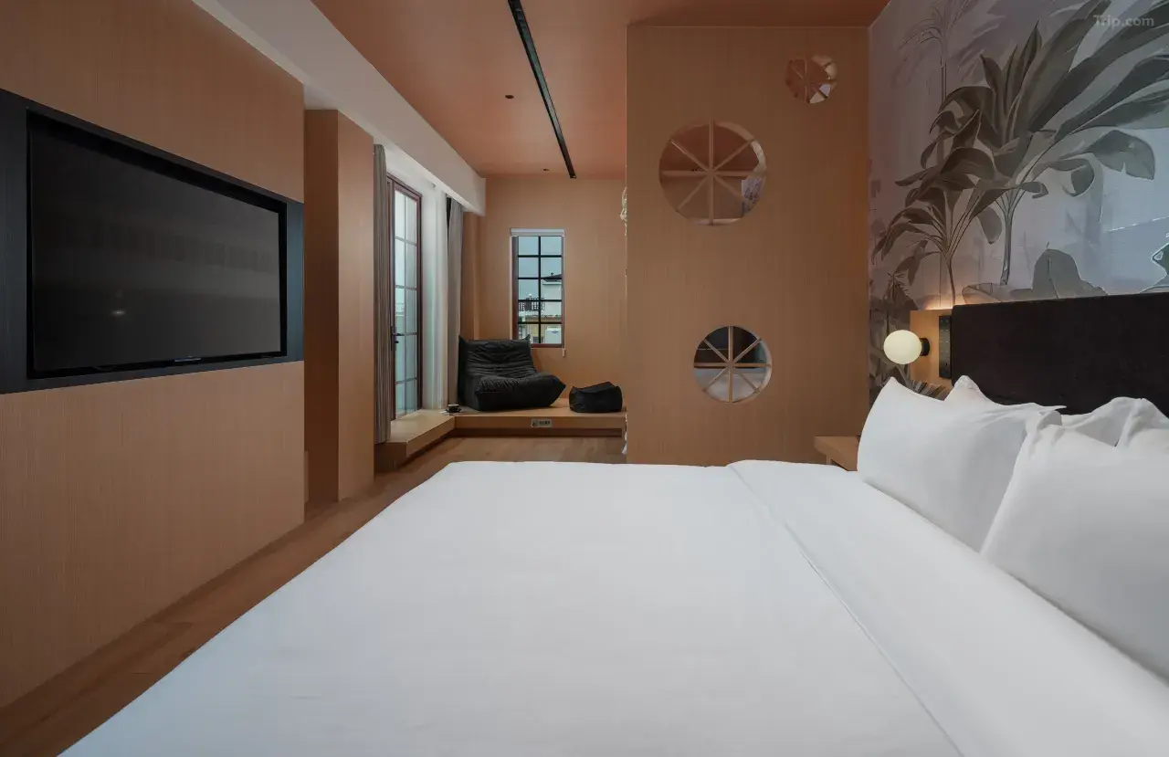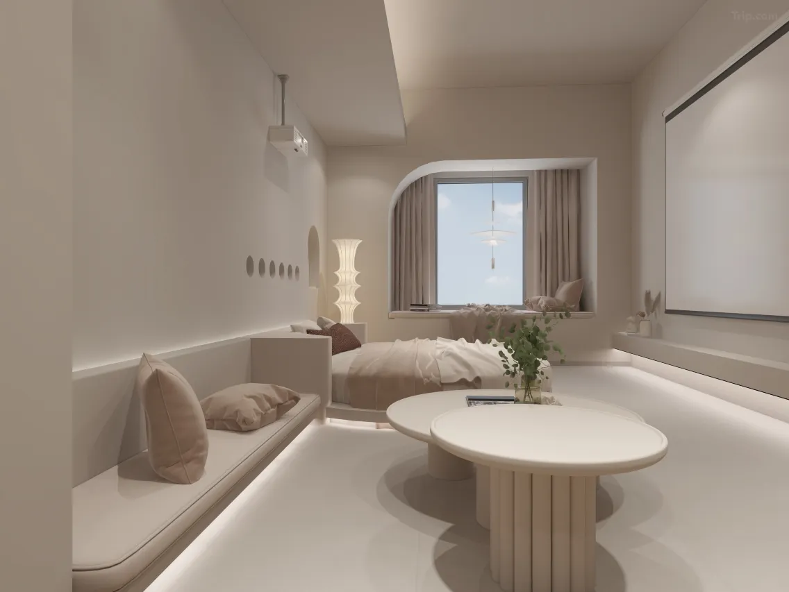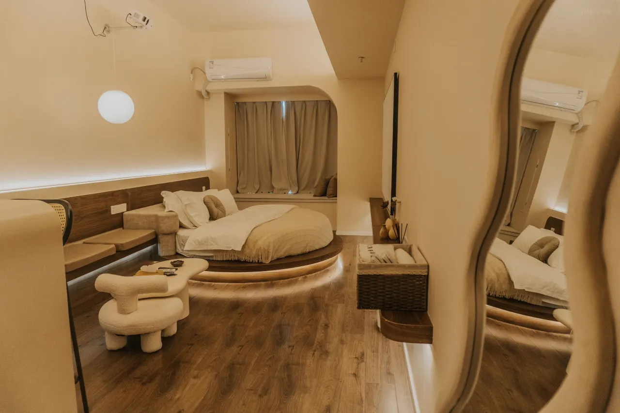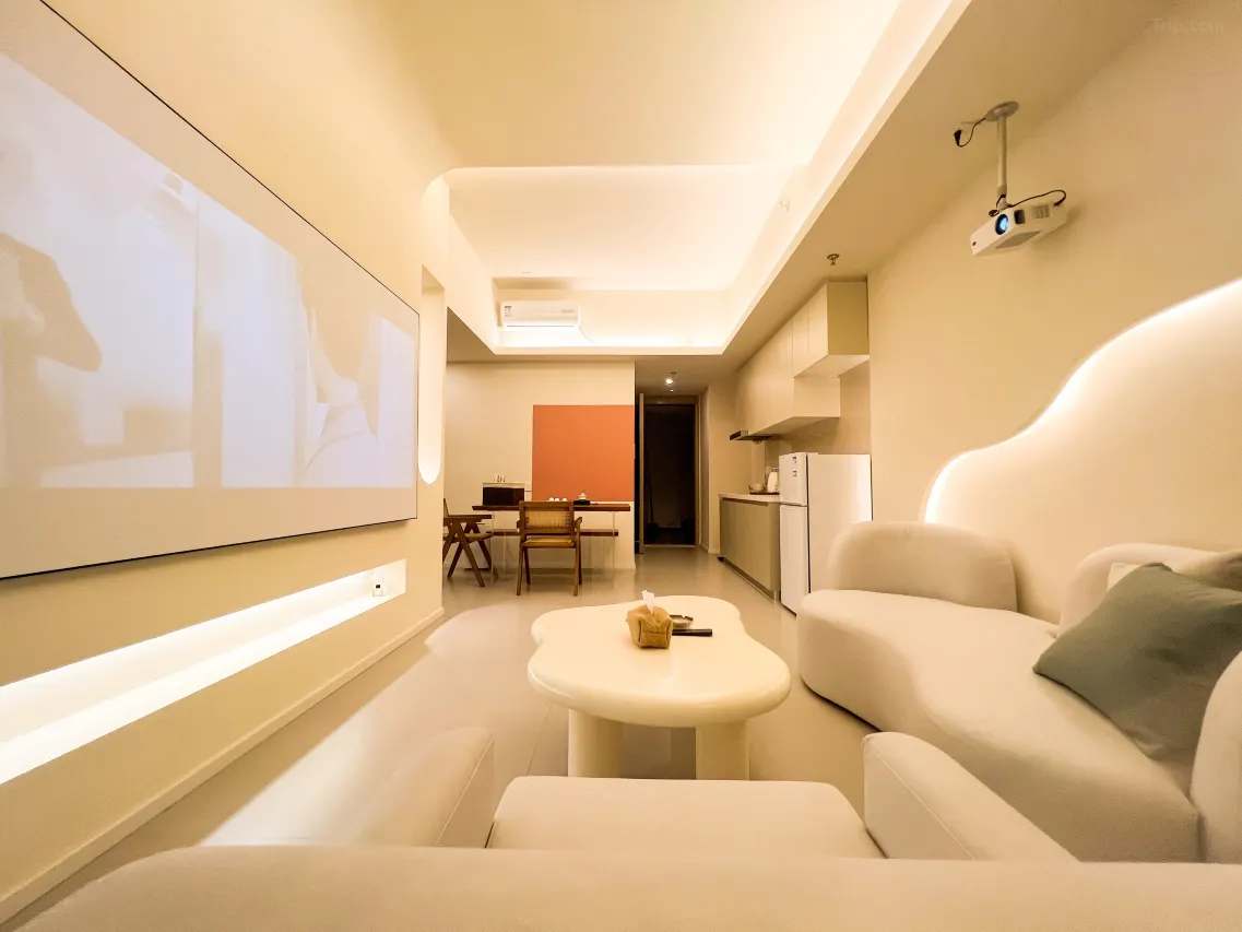 这家民宿以其治癒系的简约风格设计及贴心的服务,在社交平台上获得了不少好评。朴舍民宿的房间设计偏向温馨舒适,并融入了侘寂风的设计理念,营造出让人放松的氛围。而且每间房均配置了百寸智能投影,让住客在结束一天的游玩后,能惬意地享受影院级的观影乐趣。民宿的地理位置极为优越,旁边便是大型购物中心万象城、润街及苏宁广场,餐饮、购物、娱乐一应俱全,生活机能满分~