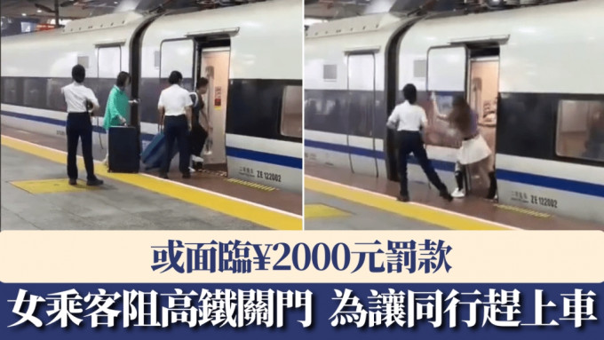女乘客阻高铁关门,力抗乘务员为让同行赶上车。