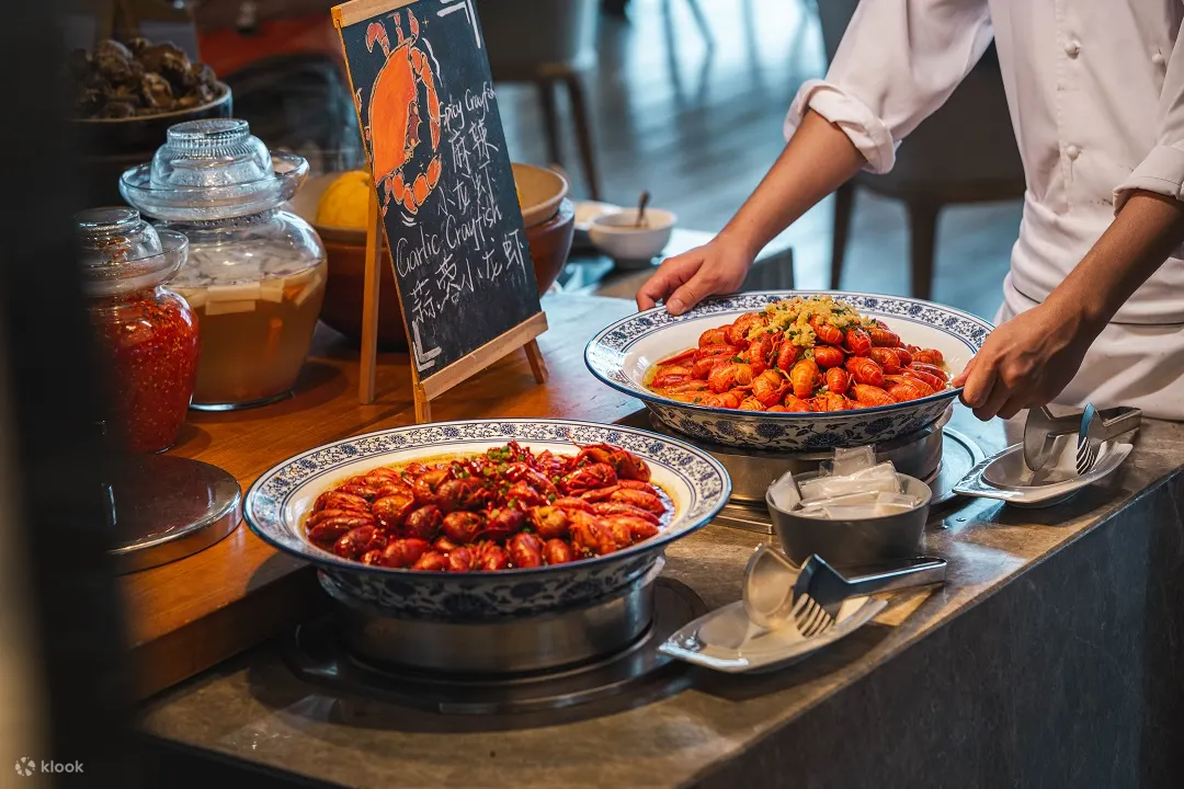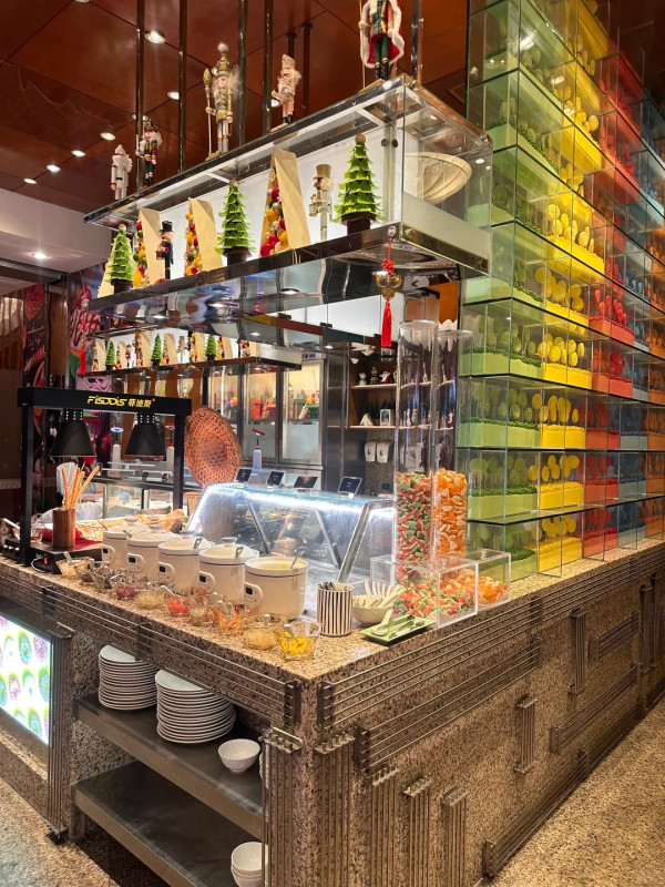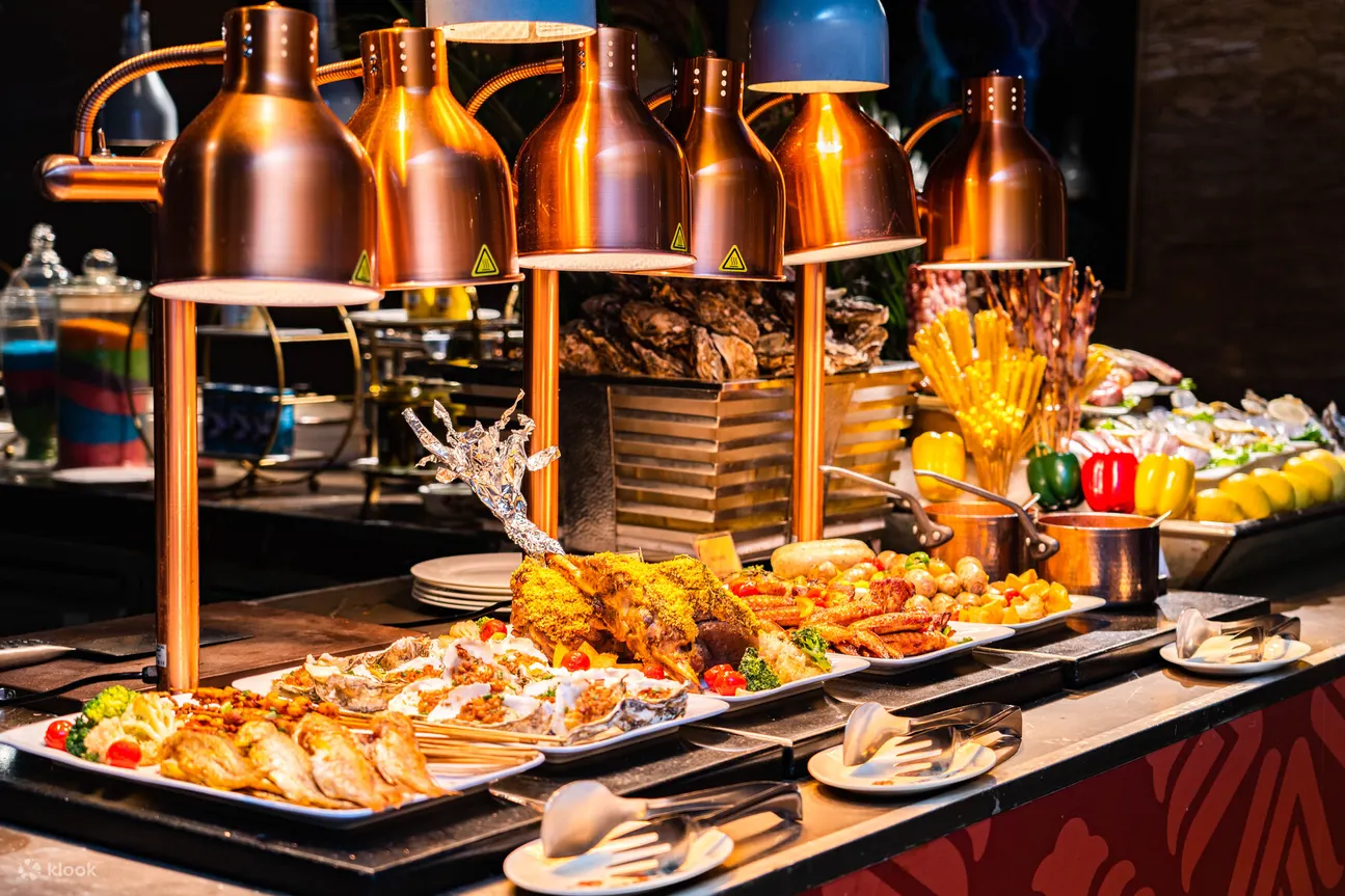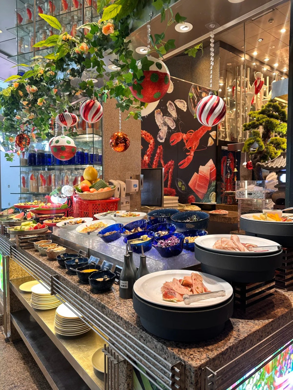 深圳福田香格里拉酒店菜式选择丰富多元,涵盖中式、西式、日式美食,烤肉、熟食、刺身也一应俱全,以海鲜池为一大亮点,大家可以现捞皮皮虾、鲍鱼等肥美海鲜,保证新鲜!一到圣诞,餐厅特別举行现场抽奖、手工圣诞姜饼屋工作坊、圣诞老人互动合影和现场乐队等活动,并佈置圣诞装饰,让大家在节日气氛浓厚的氛围下享受主题美食。