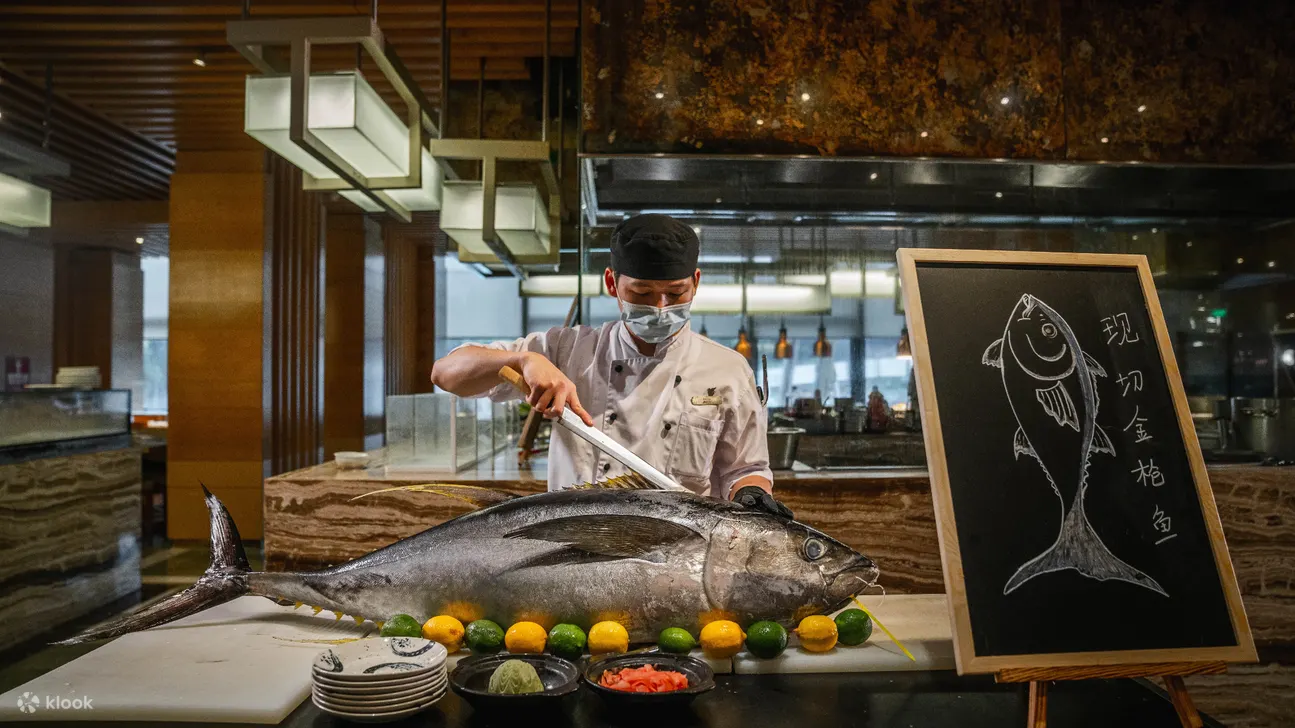 金茂深圳JW万豪酒店设室内飘雪,是圣诞打卡必到好去处之一。餐厅提供多款鲜活生勐时令海鲜,例如:老虎蟹、罗氏虾、蓝口贝,还有现场吞拿鱼表演,非常吸睛!抽奖环节更是圣诞节自助餐的一大卖点,想获得5天4晚奢华游轮旅行和豪华总统套房等升级抽奖礼品的话就要来这里碰碰运气了~