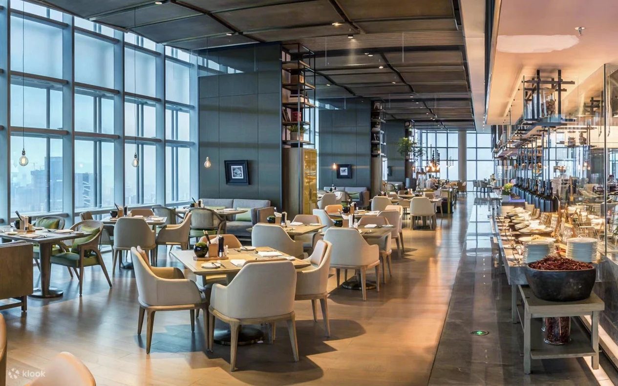 深圳中洲万豪酒店的自助餐厅「尚膳」位于酒店的43层,餐厅有大大的落地玻璃窗,可以远眺深圳市景。自助餐厅分为中餐和西餐区,菜式丰富,有炙烤扒类、刺身、沙律、热盘、甜品等。这里不时会更换自助餐主题,至圣诞时更会换上圣诞装饰。