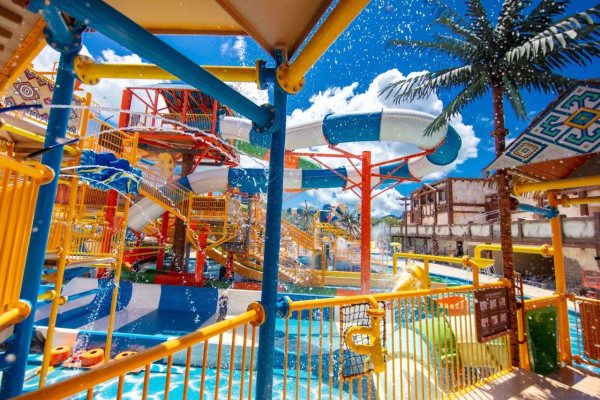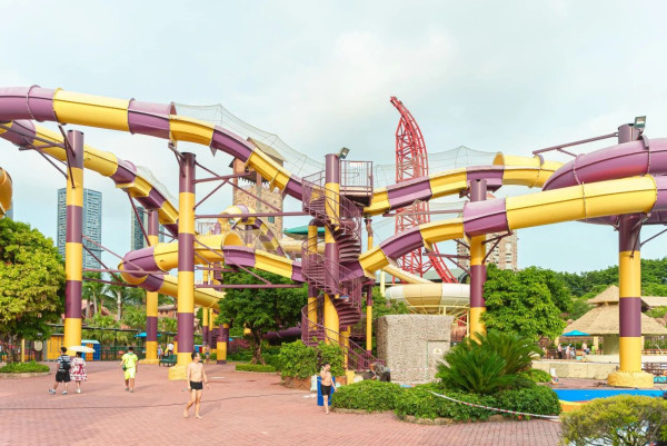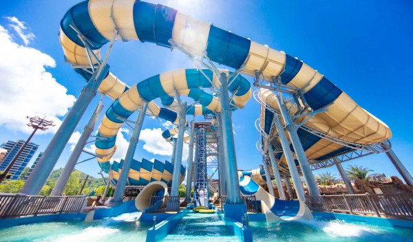 中信金沙湾水世界位于深圳大鹏新区,园区大致分为4个区域,而且拥有多项游玩项目,包括中国首台进口裂口式大喇叭、共有17条滑道的超级大水寨「海湾水寨」、百米漂流河、造浪泳池区等。大部分游乐项目需要身高至少110cm以上,更适合6岁或以上的小朋友到访。