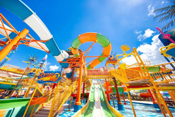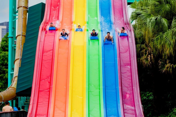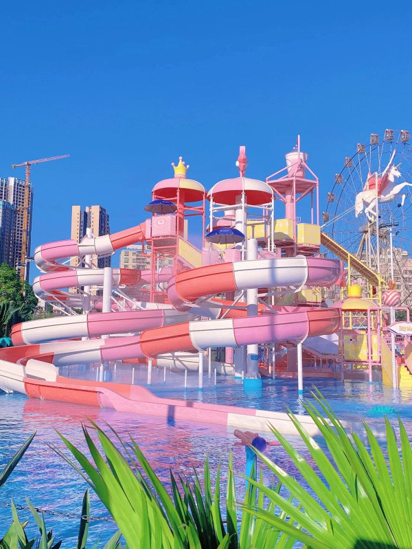 星高度梦想水世界位于深圳龙岗区,佔地30,000平方米。水上乐园主调为粉红色,风格梦幻,打卡度十足。水上乐园分为3大主题区,包括遇见海豚湾、独角兽城堡、火烈鸟之森。园内有造浪池、彩虹滑道和空中透明玻璃漂流河等设施,让游客在享受水上活动的同时,也能拍出美美的照片。园内的粉色卡通造型和巨型粉色独角兽设计感十足,随手一拍都十分美。