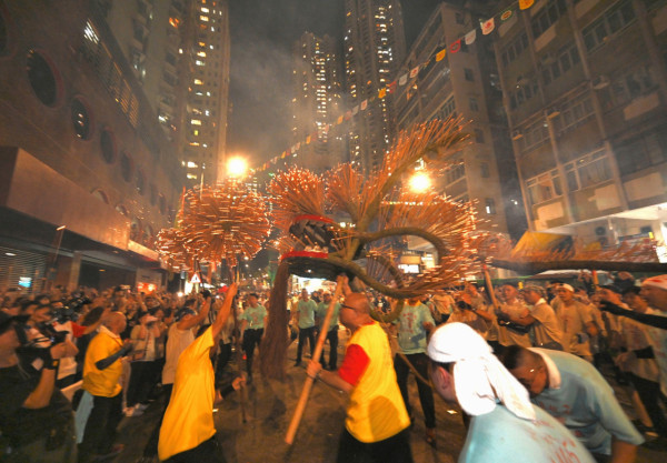大坑舞火龙 10月5日, 晚上7:30至10:00;10月6日, 晚上7:30至11:30 (大坑);10月7日, 晚上7:30至10:00 (维园) 免费观赏 香港岛铜锣湾大坑浣纱街至铜锣湾道 / 维多利亚公园