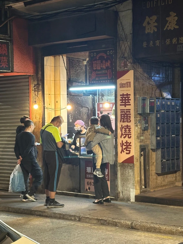 华丽烧烤隐藏于街角小巷,华丽烧烤是拥有三十多年歷史的澳门道地串烧外卖店,深受本地人追捧。主打炭火烧烤,款式虽不多,但每串都由老闆亲自腌制,现点现烤,更加入花旗蔘粉增添甘香味。其烧鸡髀、鸡皮、鸡软骨、香肠等,香气扑鼻,口感独特。尤其是鸡皮,经过复杂处理后烟韧不腻,与市面上的脆鸡皮截然不同,是宵夜解馋的首选。