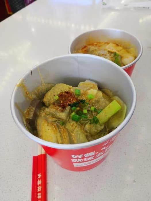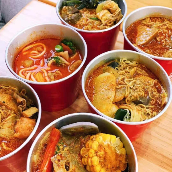 大喜麻辣拌与传统麻辣烫不同,它以「拌酱」方式调味,食物现点现煮,再搭配猪骨熬成的椒麻汤底及秘制拌酱。这款拌酱由花生、芝麻、青红花椒等24种天然辣材调制而成,香麻浓郁,是辣味爱好者的天堂。店内提供多款食材选择,包括大虾、虾滑、爆浆海芋球、丸类、饺子及红薯粉等面底,也可选择番茄汤底,满足不同口味。