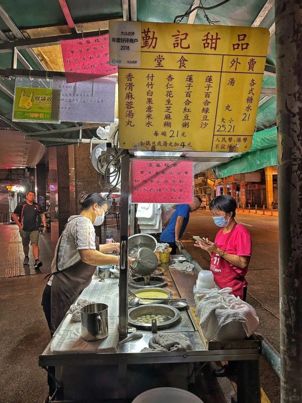 勤记糖水以其祖传秘方制作的滋润糖水而闻名。其招牌腐竹白果薏米糖水,将腐竹熬至完全融化,口感如浓缩豆浆般香醇浓郁,配上软糯的白果和烟韧的薏米,每一口都感受到真材实料。其他经典糖水如芝麻煳、绿豆沙、红豆沙同样出色,更可加配老闆娘现点现包的汤圆,皮薄馅香,为深夜带来一份温暖与甜蜜。