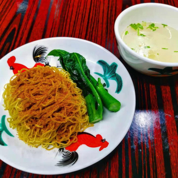 独食面屋以其独特的「海鲜太阳蛋咖喱炒面」闻名,这道菜以秘制咖喱汁搭配半熟蛋黄,拌匀后香浓四溢。海鲜份量十足,虾肉鲜甜、带子弹牙。除了海鲜选择,也有包含猪、牛、鸡肉的「大王肉食炒面」及素食炒米粉。店内还提供多款吸引人的小吃,如桂花蜜鸡髀、虾酱煎鱿鱼、南乳鸡翼尖等,为深夜的味蕾带来丰富层次。