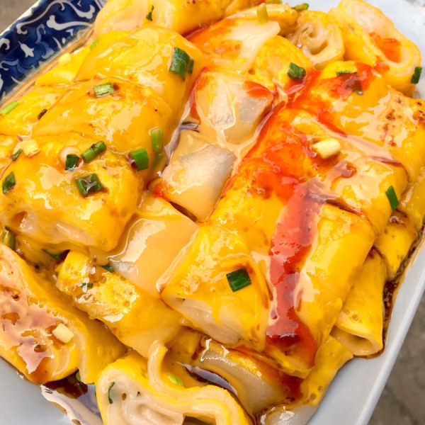 伦记软滑肠粉位于大三巴附近的人气布拉肠粉专门店,以现点现做的葱花鸡蛋肠粉闻名。肠粉皮薄滑熘,加入蛋浆后呈现诱人的鲜黄色,充满浓郁蛋香,口感软滑富有弹性。食客可依喜好搭配甜酱、麻酱、辣酱、豉油或老干妈等调味。除了肠粉,店内也提供多款汤面粥品,是游览大三巴后,深夜寻觅轻食的绝佳去处。