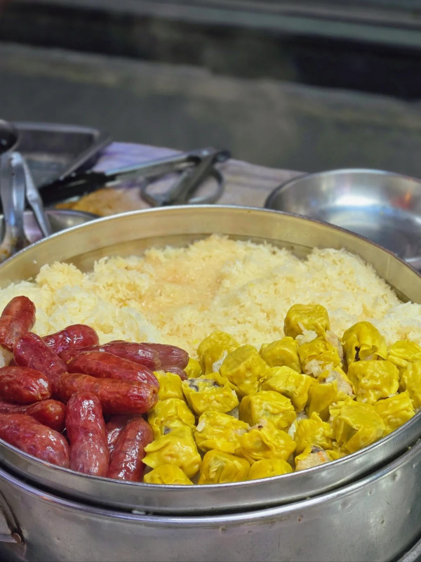 权记骨粥是沙梨头海边街「宵夜三巨头」之一,拥有八十多年歷史,是不少澳门当地人外卖宵夜的热门街边档。其招牌猪骨粥以优质猪骨长时间熬制,散发浓郁肉香,粥底加入瑶柱,口感浓稠而不腻。除了粥品,糯米饭也是其特色,蒸熟的糯米饭不加调味,搭配腊味和鱼蛋粒,再淋上秘制豉油,风味独特。