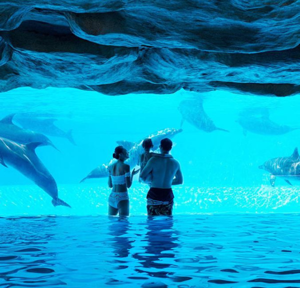 水世界不定期更会举办舞台表演、梦幻泡泡派对、夜间烟花表演等特別活动,非常热鬧。肚子饿的话,可以到园内的海豚主题自助餐厅用餐,一边吃美食一边看海豚游动~