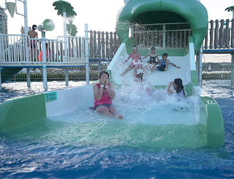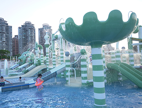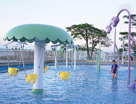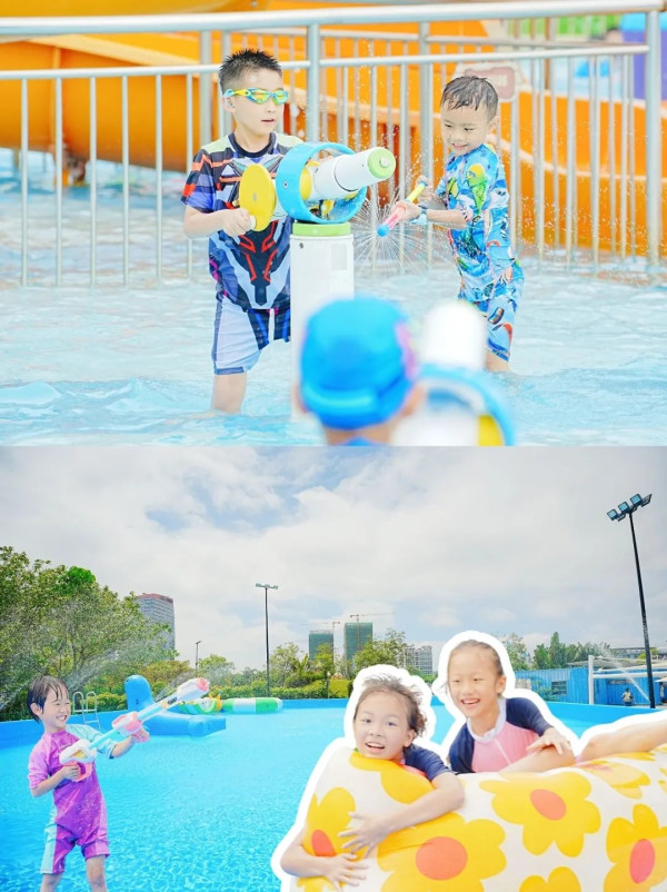 珠海热浪湾水乐园位于珠海香洲区吉大街道情侣中路,紧邻城市客厅与海滨泳场,还能远眺港珠澳大桥与「爱情邮局」,风景开阔。这里佔地约3,860平方米,虽不算大型,但设施乾净、环境新颖,是一个比较轻松和亲子友好的水上乐园。热浪湾水乐园主打浅水池与亲子设施,场内共有三个泳池,其中两个是专为儿童设计的浅水池,设有彩色滑滑梯、趣味城堡、水枪和戏水装置,就算是只有约1米的小朋友也能安全玩耍,而且1米以下免票!园区还特別设有抓螃蟹、跷跷板、喷水等活动区,让小朋友盡情消耗体力。