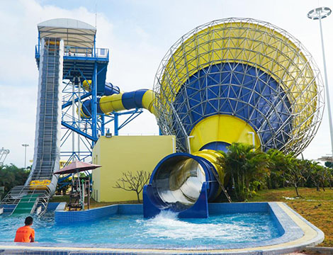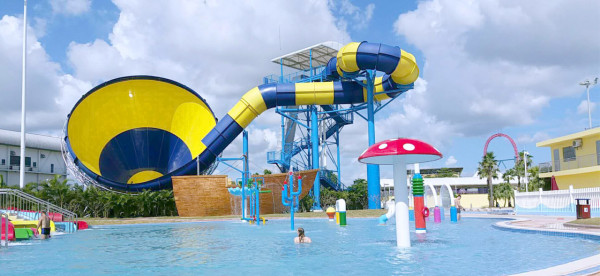 海泉湾加勒比水乐园设于珠海金湾区的海泉湾度假区内,有椰林沙滩、造浪池和刺激滑道。园内中央是巨大的造浪池,白天有音乐和表演,夜晚灯光亮起后更热鬧。最受欢迎的是「大喇叭」滑道,四人共乘滑圈高速冲入巨大喇叭中,来回摆盪刺激十足!场内还有长达70米的「彩虹滑道」,让你把压力盡情释放出来~园区还规划了亲子水寨、儿童滑梯、水蹦床等适合小朋友的区域,沙滩柔软、设备齐全,大人小孩都能玩得开心。