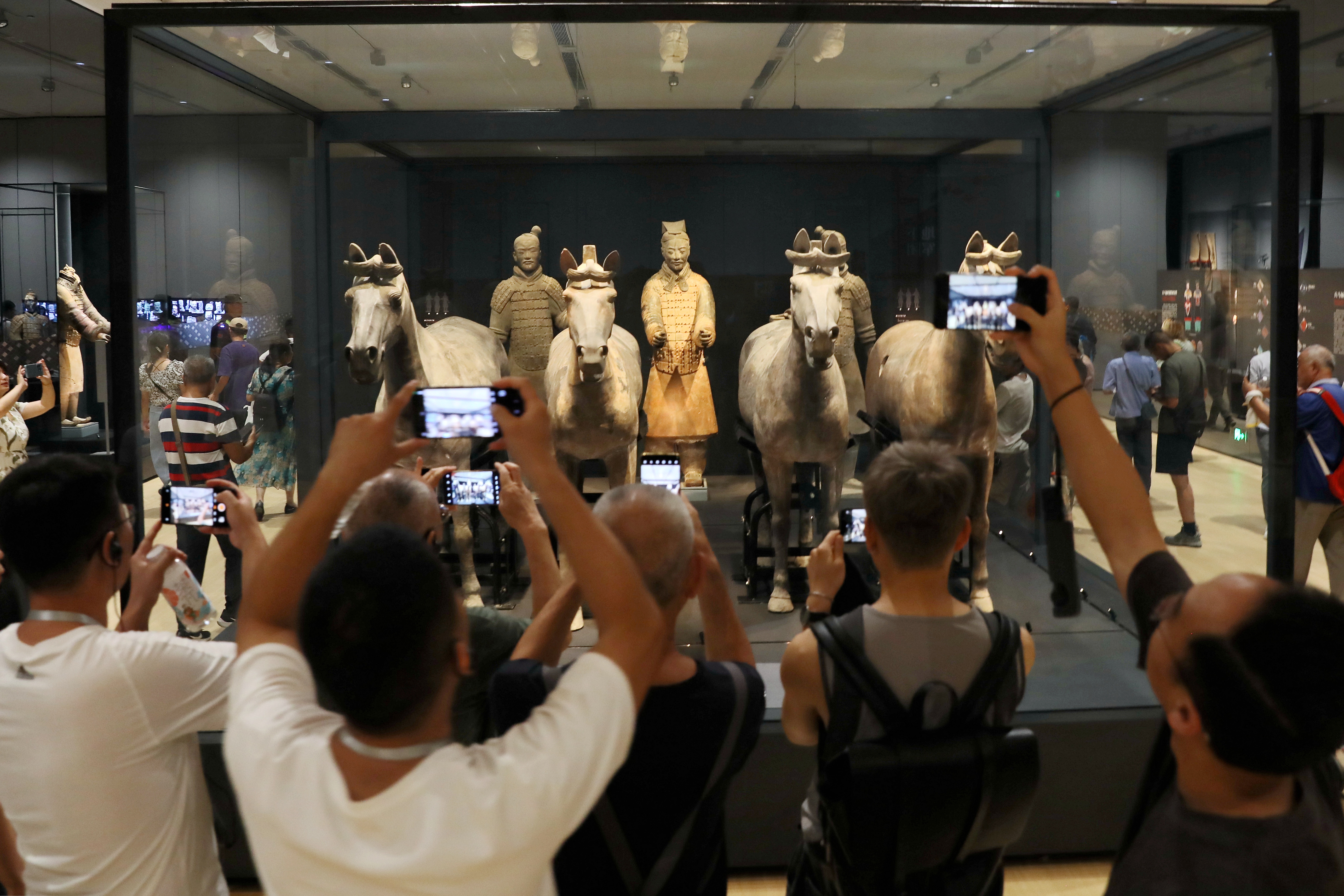 “秦兵马俑考古发掘50周年暨秦始皇陵大遗址保护研究国际会议”8日在中国西安召开;基本陈列“千古一帝的地下王国–秦始皇陵考古发现展”同时开幕,秦始皇帝陵考古发现首次集中对公众展出。