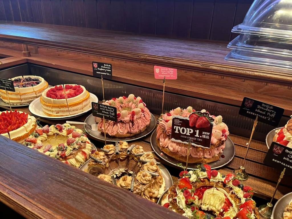 记者了解到,伦敦烘焙小镇在上海有3家门店,店面的“英伦风”装修风格颇为吸睛。市民林女士每天上下班都要经过吴江路的旗舰店,“去年刚开业时,经常看到排队购买的场景”。另有消费者表示曾数次入店购买,其表示,面包蛋糕“颜值”颇高,当时确实没有加盖罩子,店里人较多,确实会和食品近距离接触。