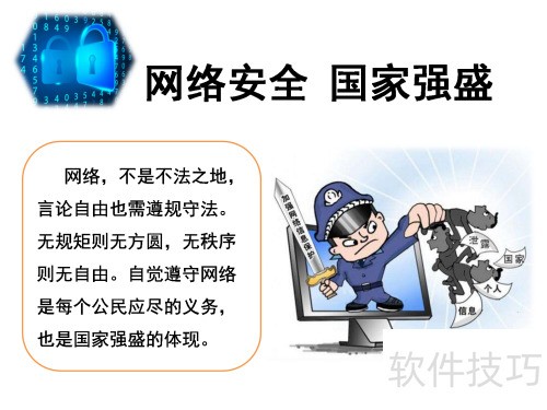 3、 第四步,在右下角绘制网络安全元素图案,展现网络安全、国家强盛的主题。