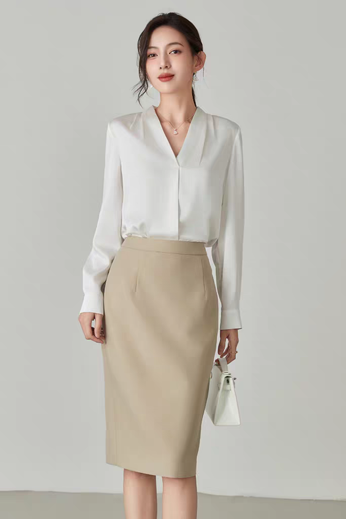 第二套:缎面 / 雪纺衬衫 + 半身裙
