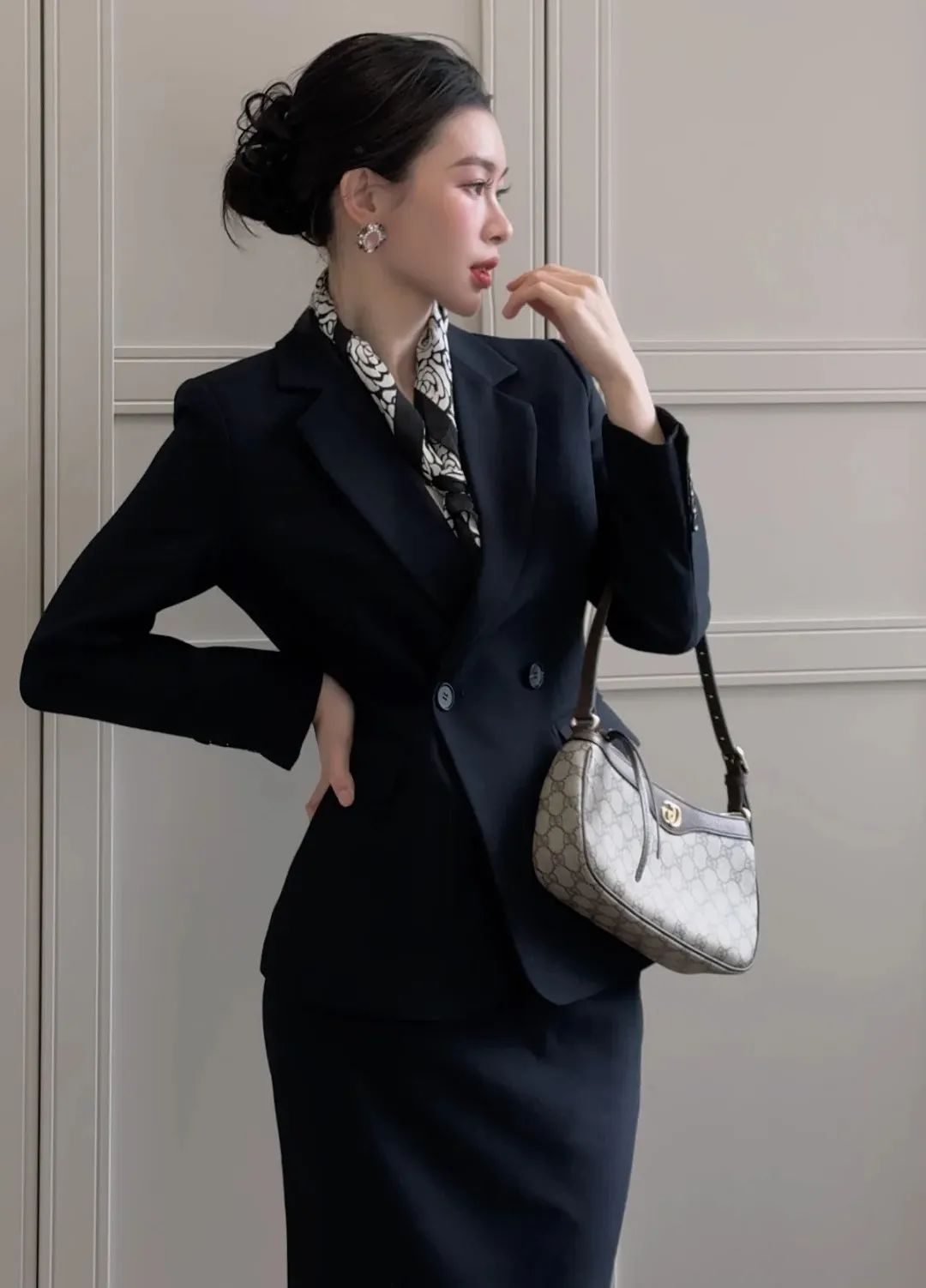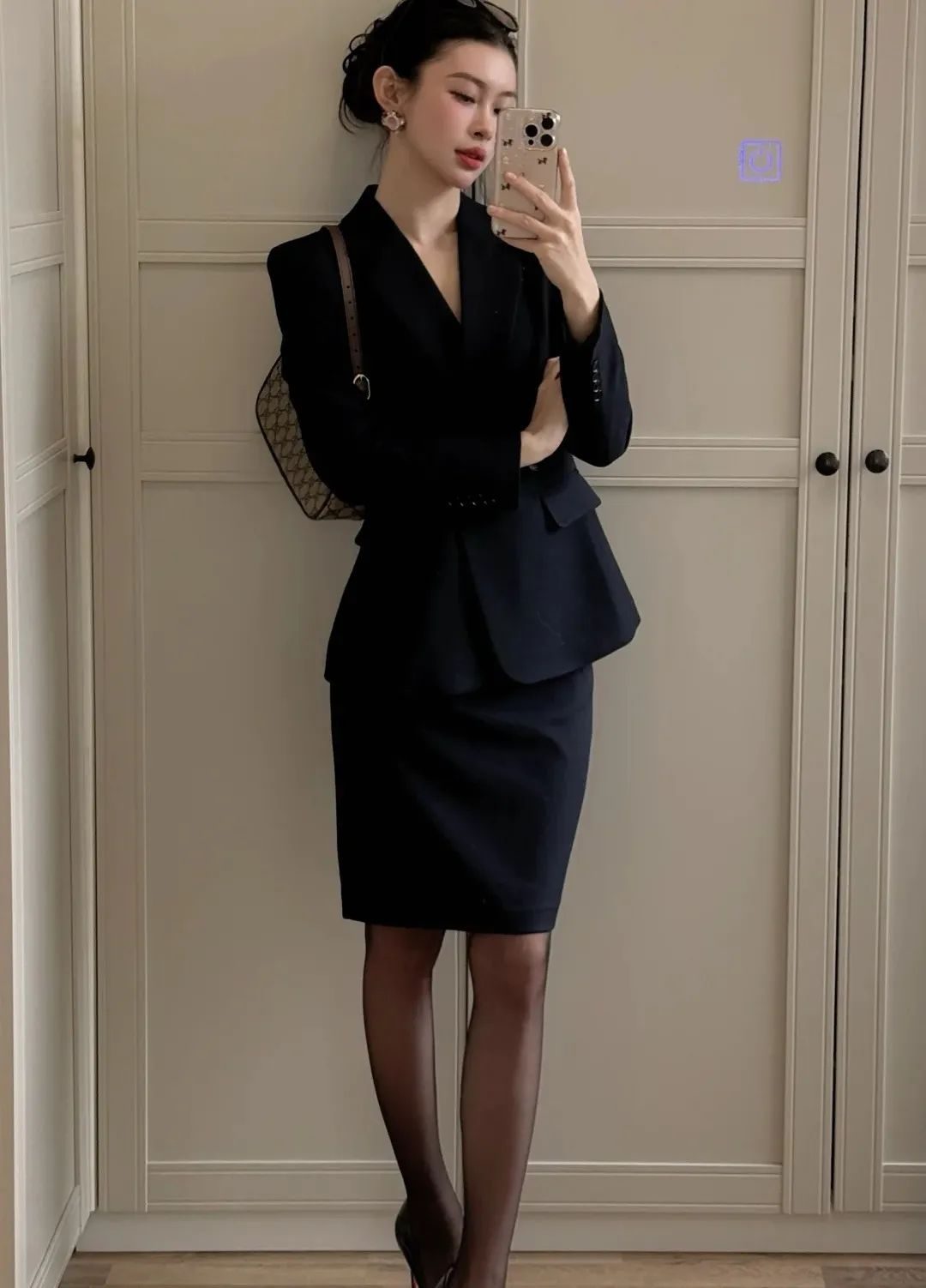 第一套:黑色收腰西装套裙