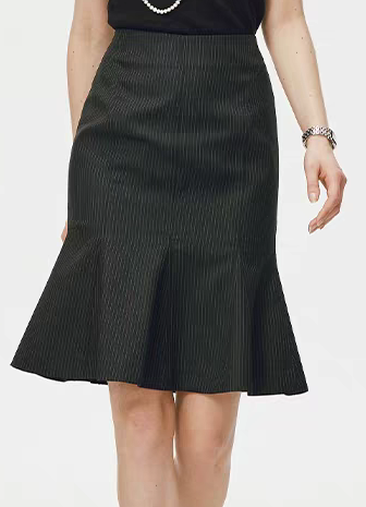 鱼尾裙是垂坠感强的条纹面料,剪裁精准勾勒臀线,面料挺括度让裙摆有型不塌 。