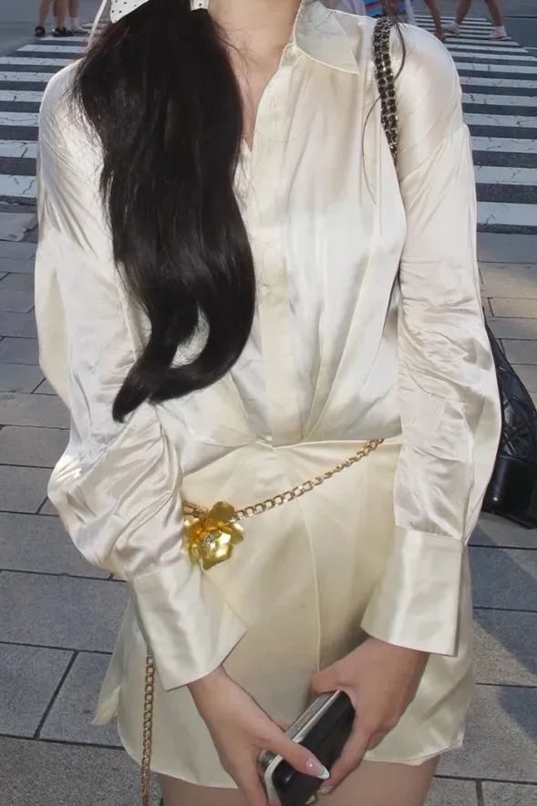 衬衫用真丝、丝绸材质,光泽柔和、手感顺滑,亲肤又显高级;裤子面料挺括,有一定垂坠感,穿着舒适且能修饰腿型。
