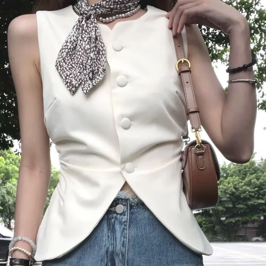 剪裁利落的无袖马甲,替代西装的正式感,保留干练线条,又多了份呼吸感。
