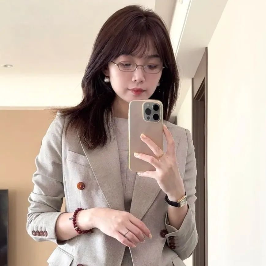 细框眼镜增添了知性气质,同时也让整个人看起来更加精神、专业。