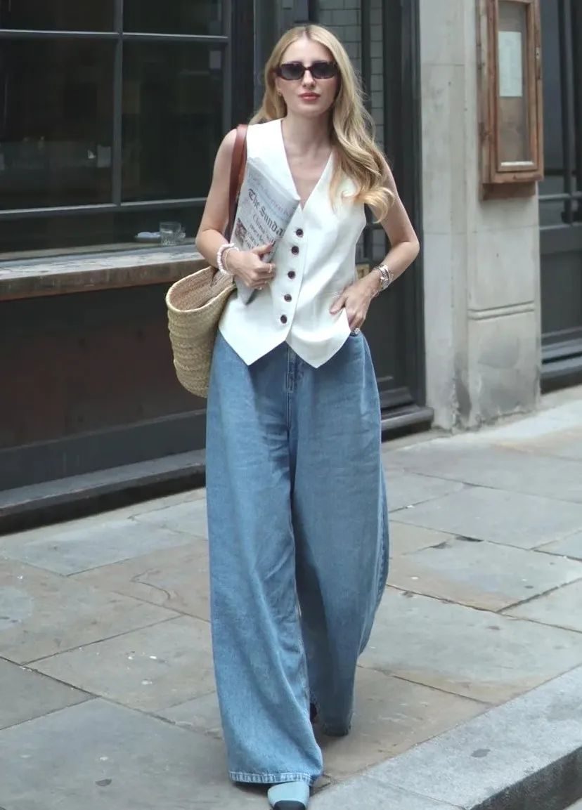 牛仔阔腿裤的垂坠感拉满,拖地长度自带气场,把 “职场干练” 和 “日常松弛” 奇妙融合。