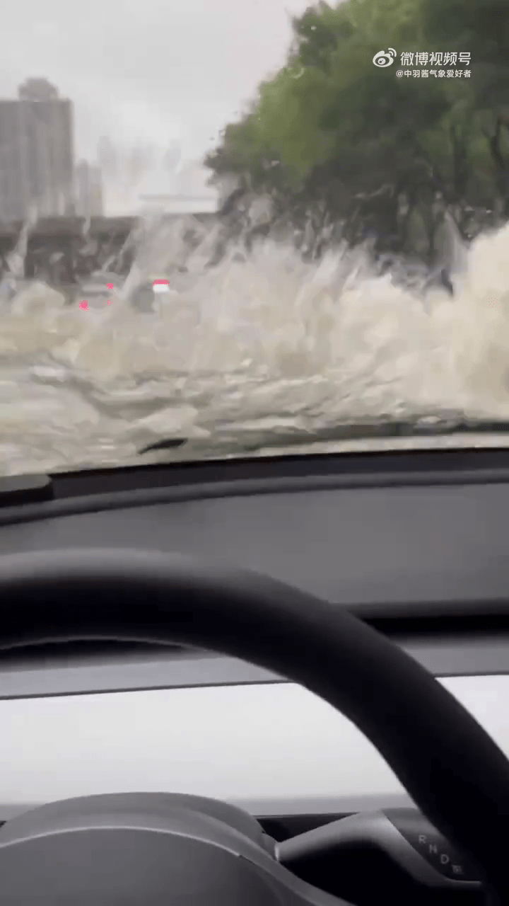 有郑州车主发布影片称在暴雨中积水已至挡风玻璃,行车视缐被阻。。