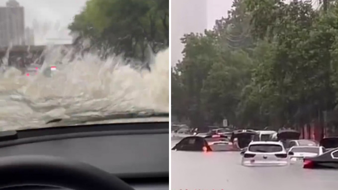 郑州暴雨|马路积水至挡风玻璃 司机无惧照「揸船」|有片